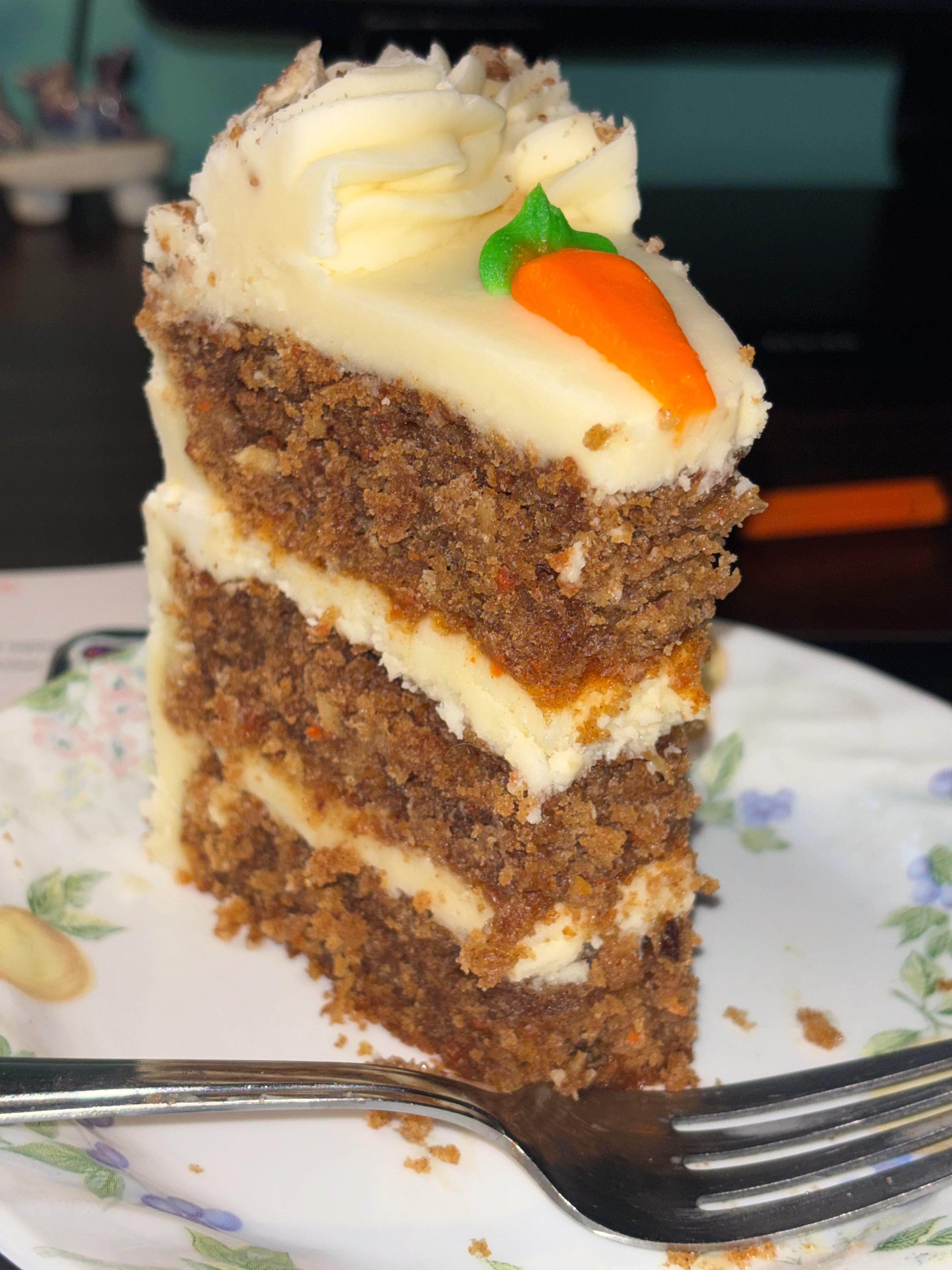 NoMoPolenta on December 11, 2025 6:45 am The move here is to separate the cake through that middle layer of icing and put them side by side. Boom, now you ate two carrot cakes.