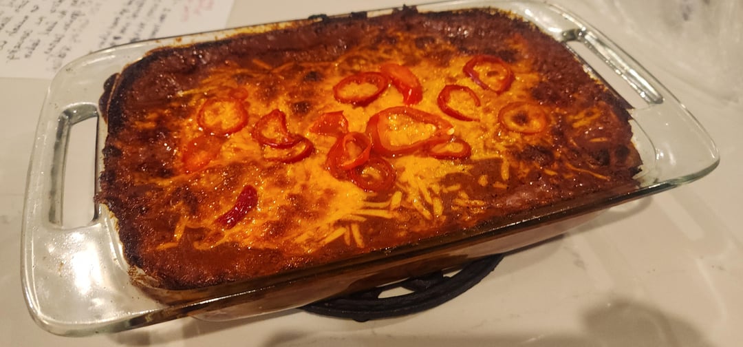 Tri-tip enchiladas and trim. Might have used a full of pound of cheese here, I take nothing back, suck it Trebeck. by Upbeat_Land_4336 Dinner Tonight Tonight's Dinner