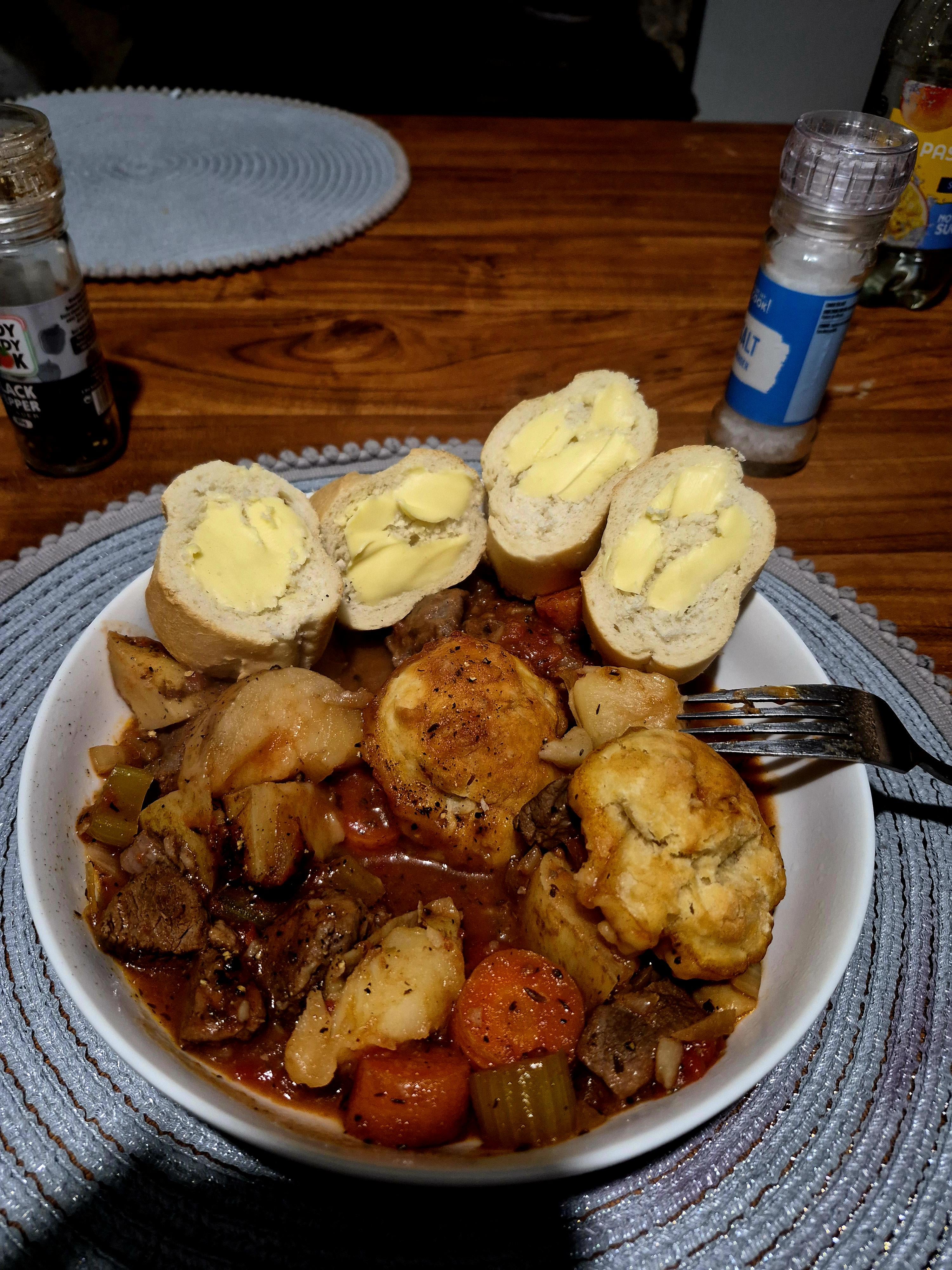 Looks excellent. Bread and butter tastes better when eating stew aswell. Enjoy