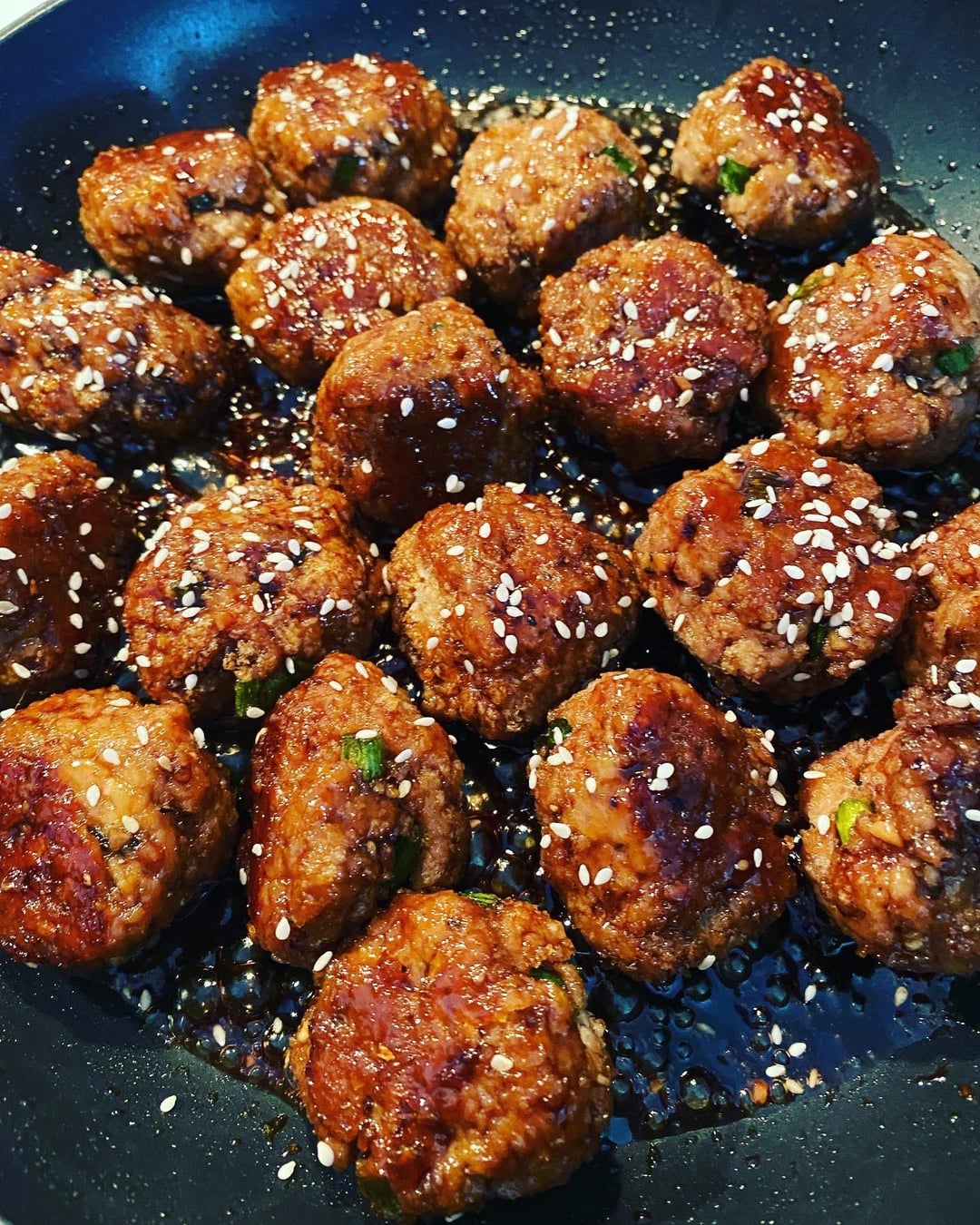Chicken Teriyaki Meatballs & Enochi Wrapped Mushrooms