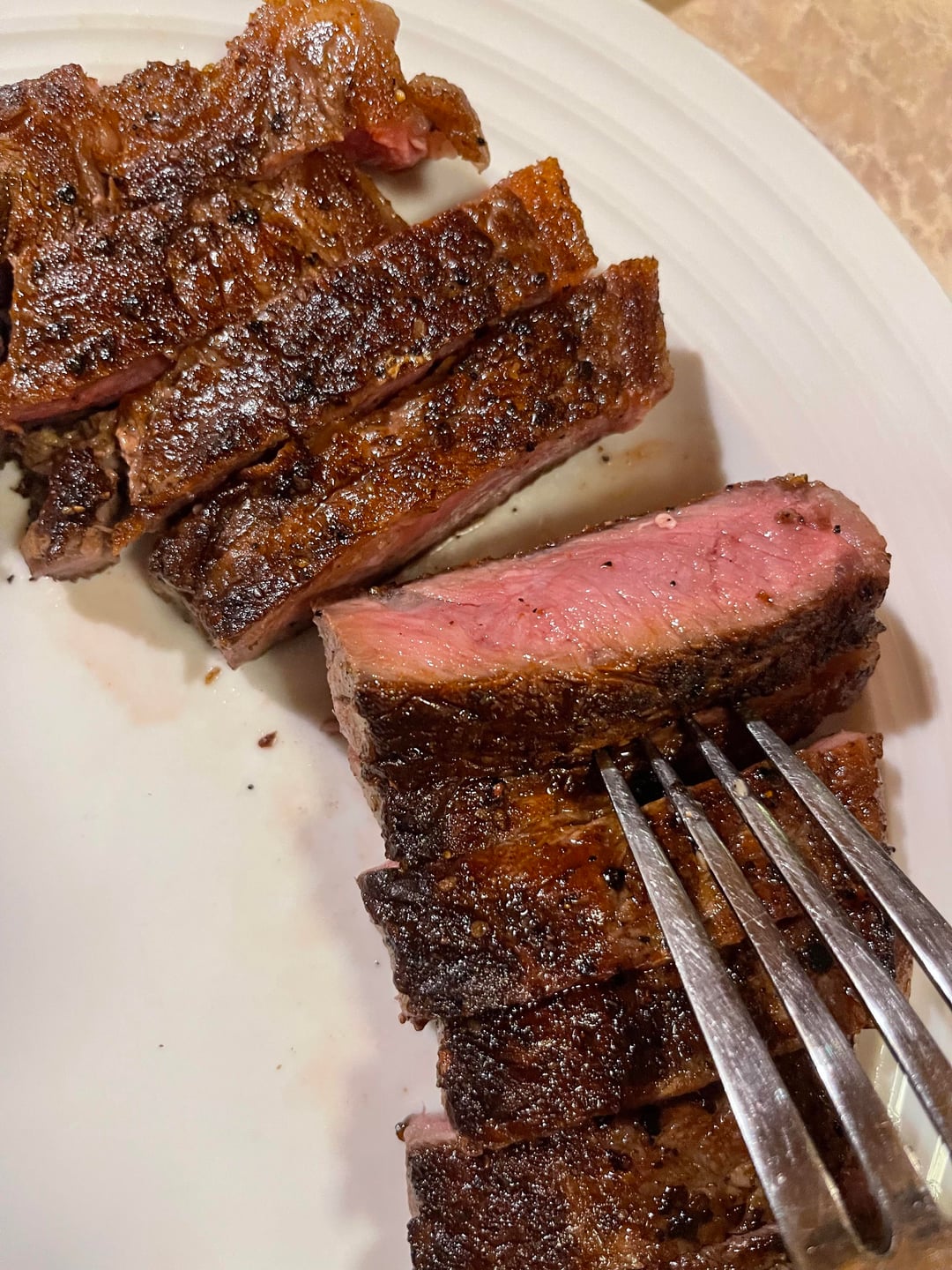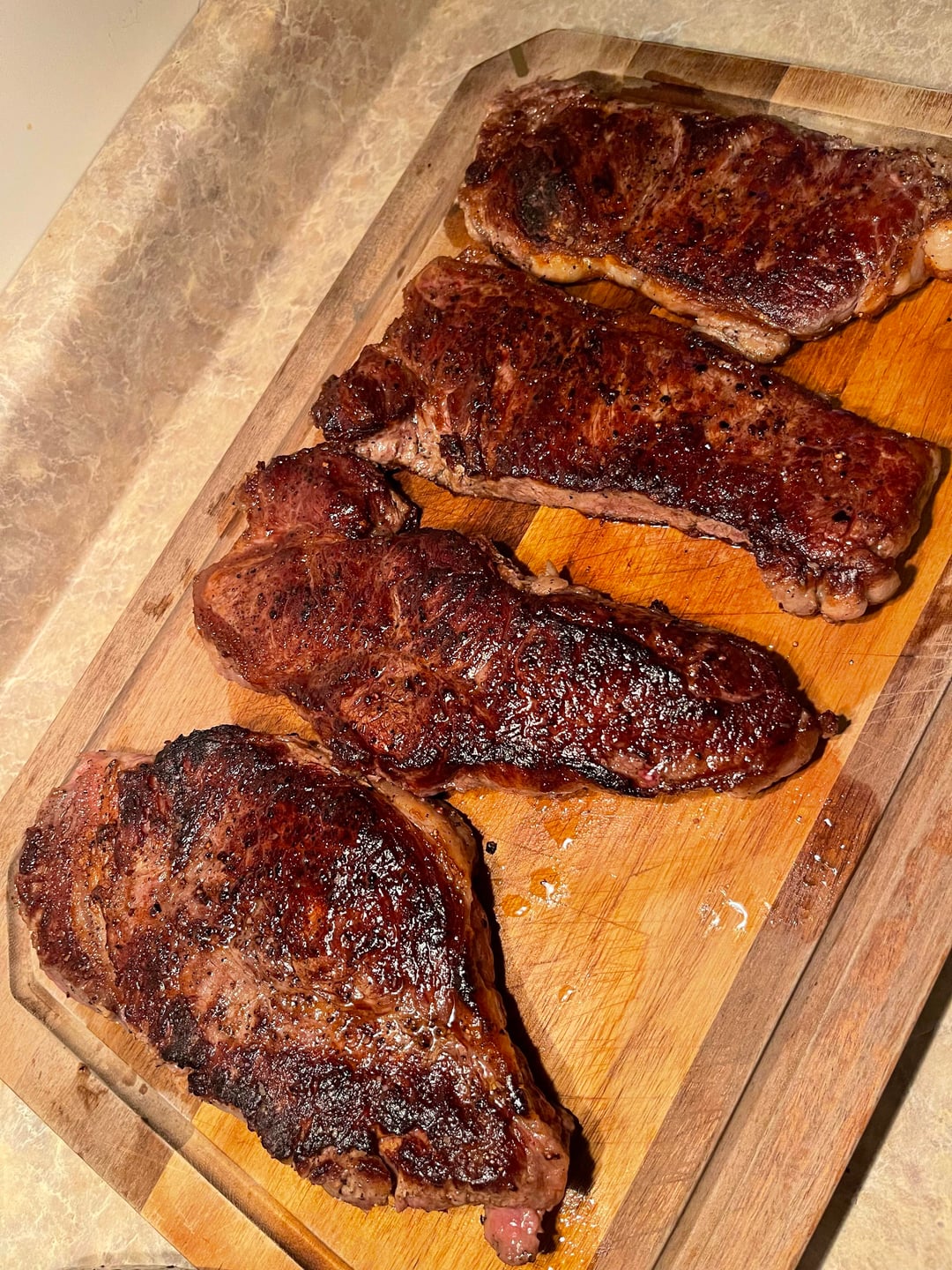 Looks amazing! NY Strips look perfectly cooked!
