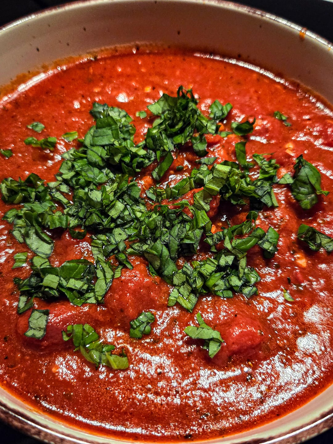 Basically simple italian dumplings, usually made with ricotta. I had mozarella and hoped for the best. Lucky they didn't fall apart when cooked. Quick homemade marinara sauce and fresh basil.