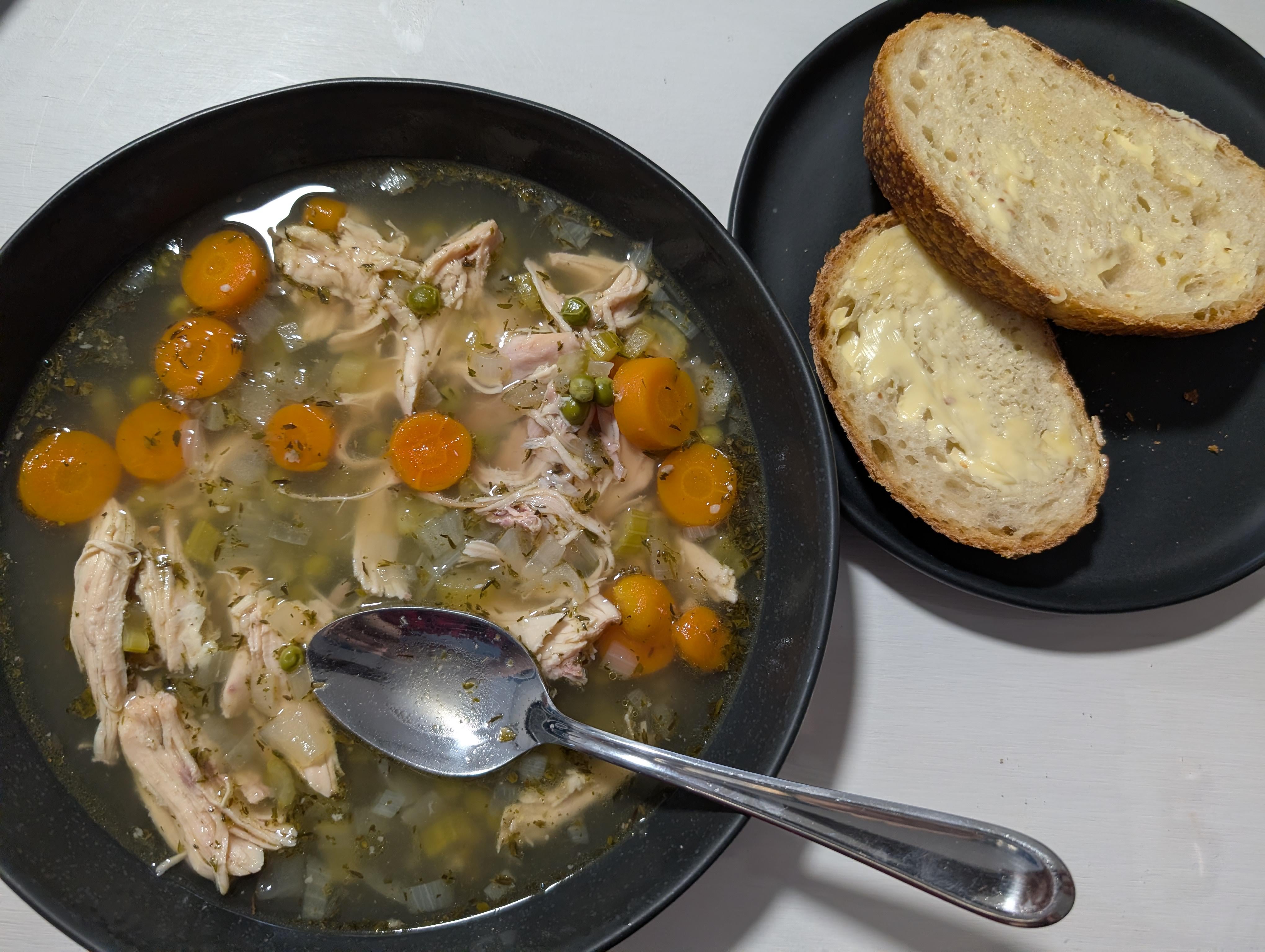 Chicken and vegetable soup with crispy sourdough on a chilly Canadian December evening by No_Presentation_907 Dinner Tonight Tonight's Dinner