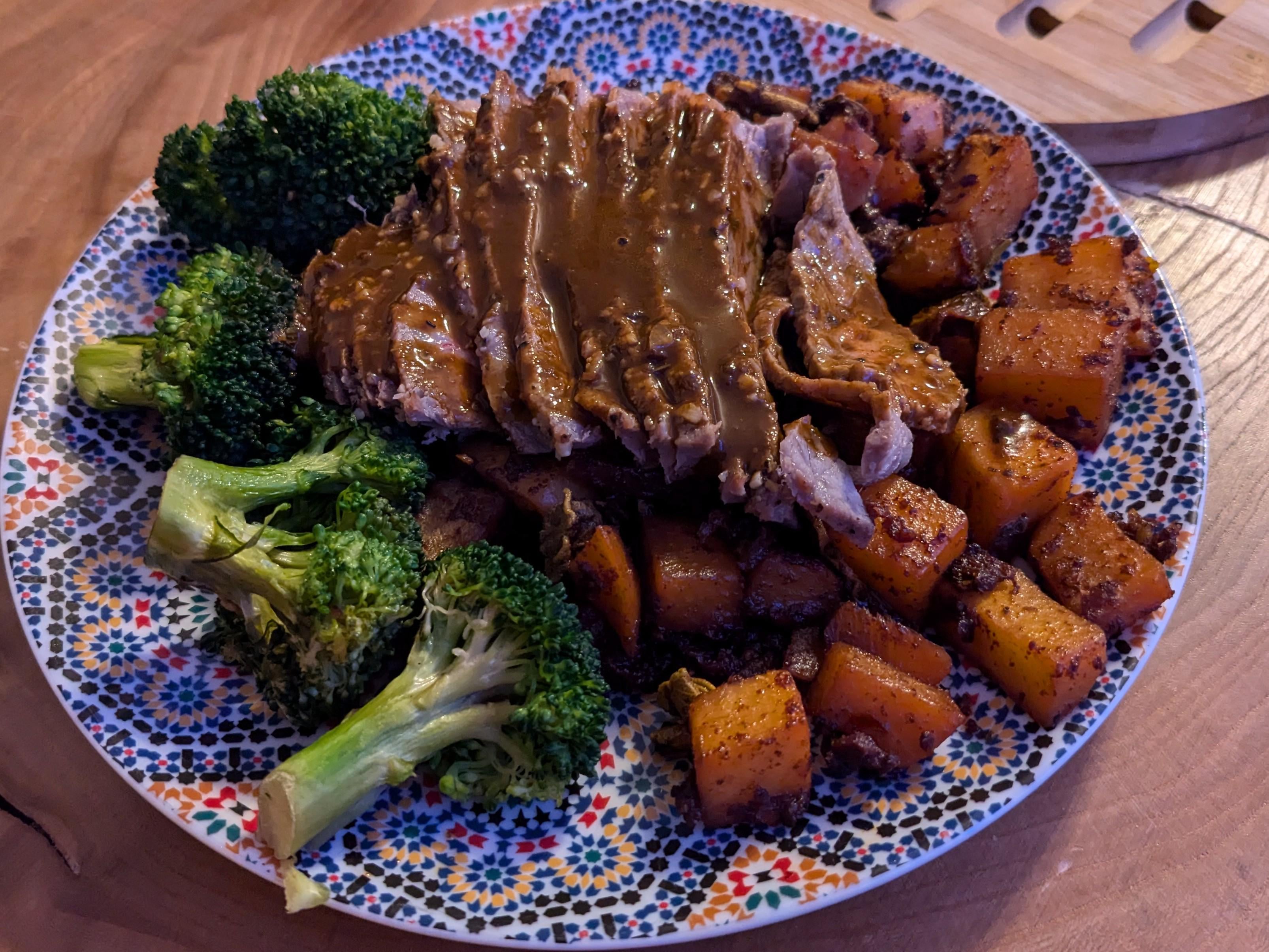 Husband grilled steak with mole sauce, broccoli, and rutabaga for dinner by PollinatorEnabler Dinner Tonight Tonight's Dinner