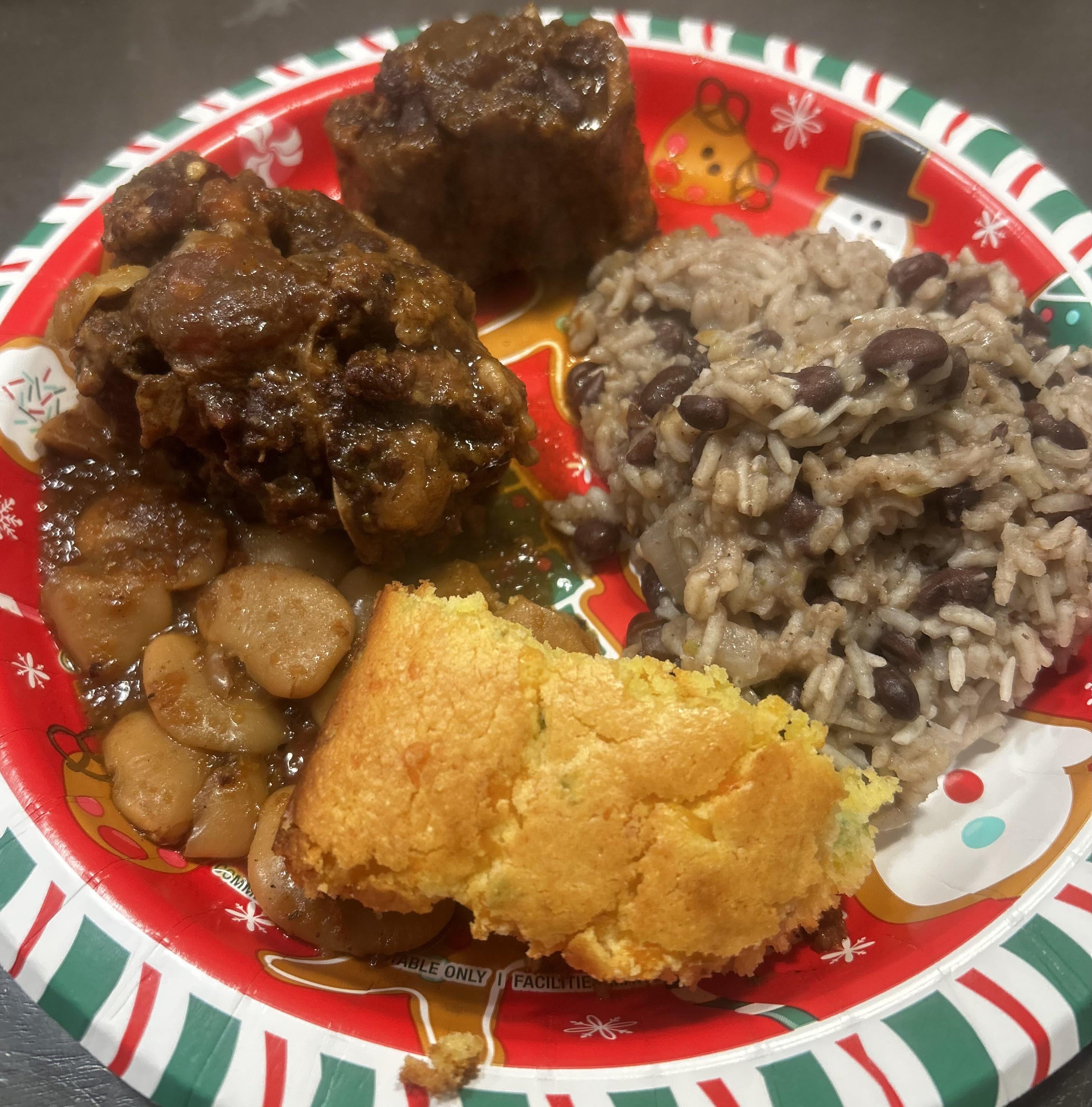 I made braisedJamaican oxtails with butter beans, Cuban rice and jalapeño cheddar corn bread. by nirvroxx Food Porn