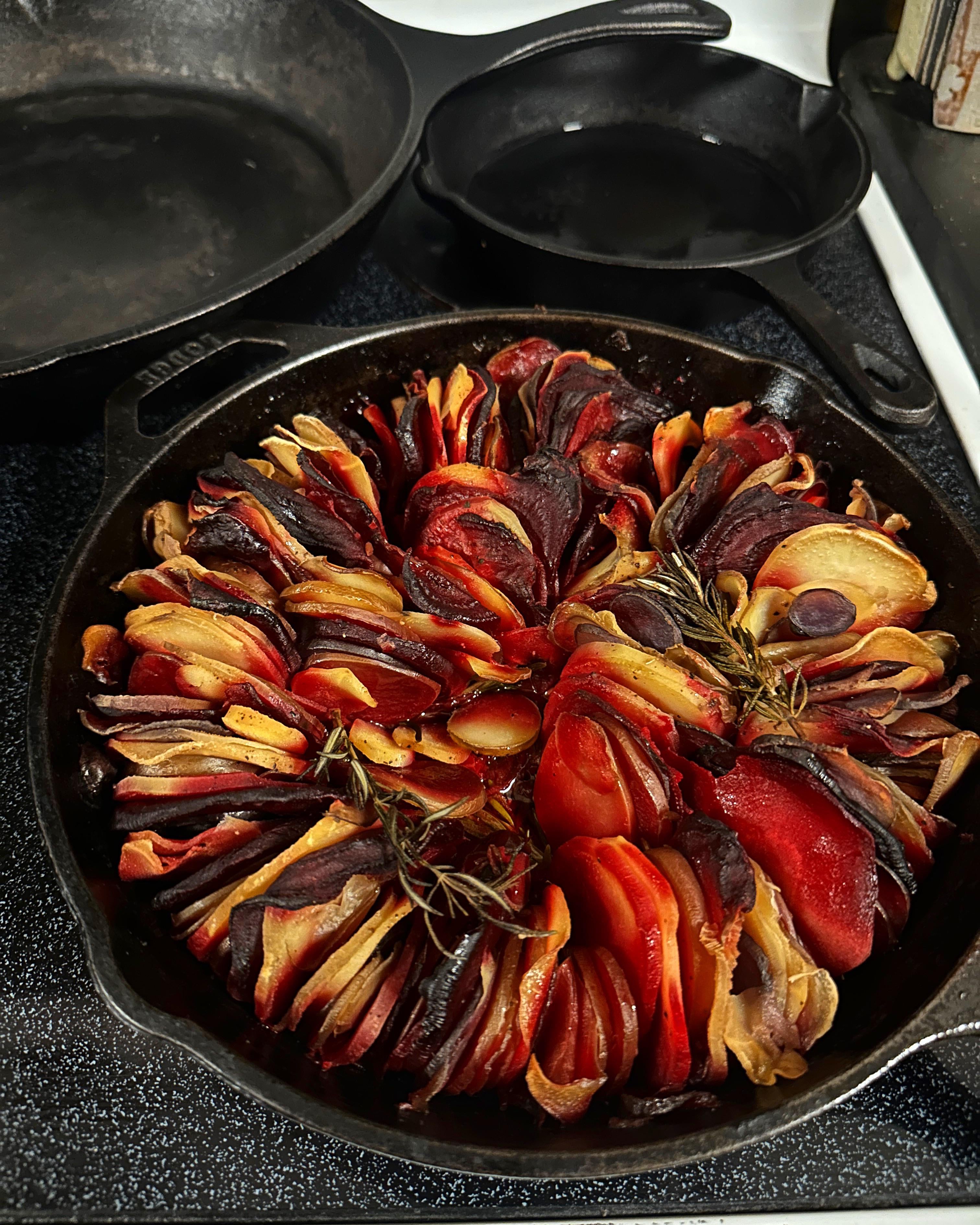 Autumnal riff on Thomas Keller’s Ratatouille/Confit Biyaldi – roots cooked low and slow in a white wine and butter sauce for something more appropriate to the colder months