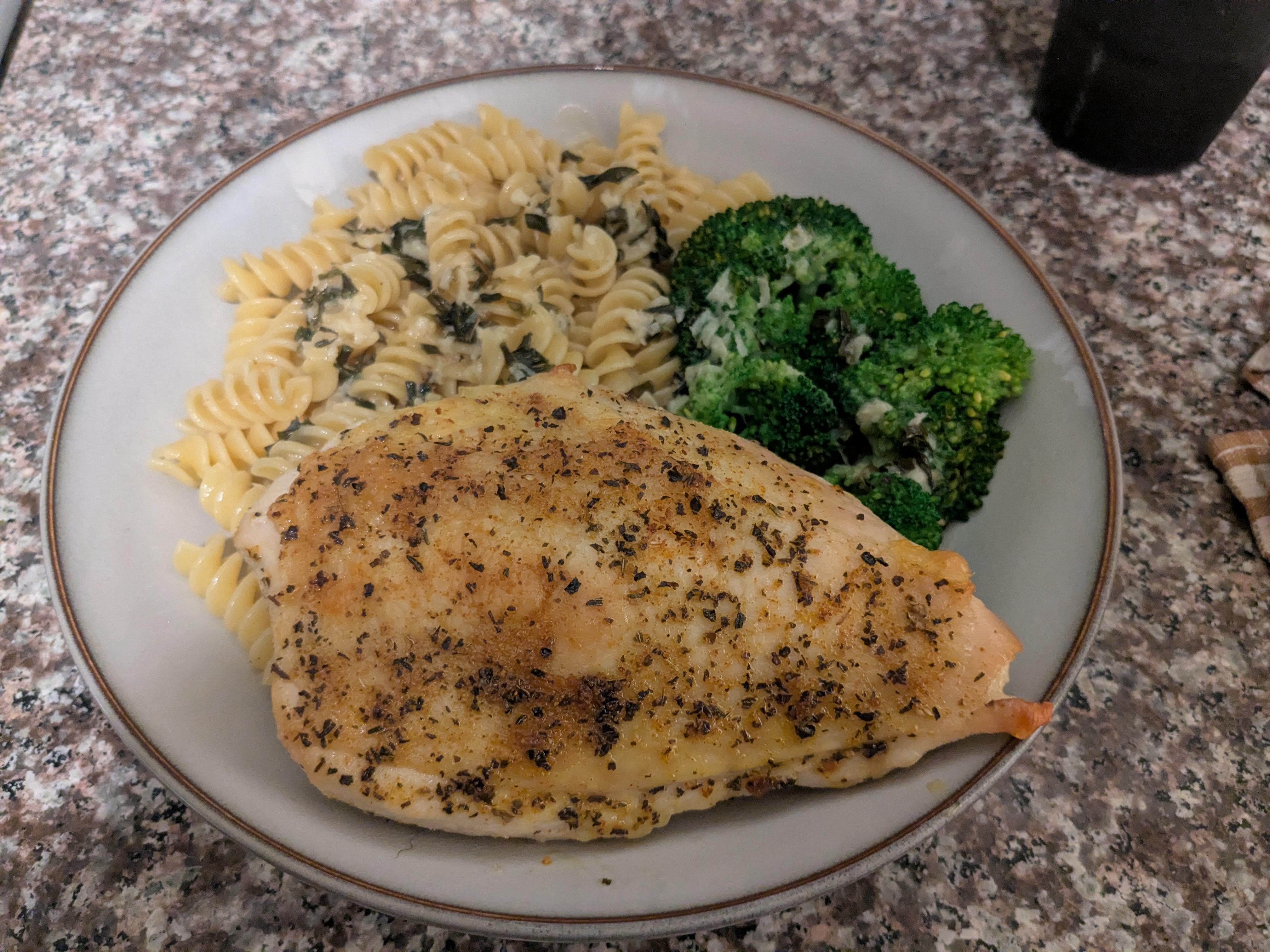 Went for a mid-century kind of plating, instead of mixing everything together like I usually do. Instead, I kept everything kind of separate, and drizzled sauce over the top of the noodles and veg and under the chicken.