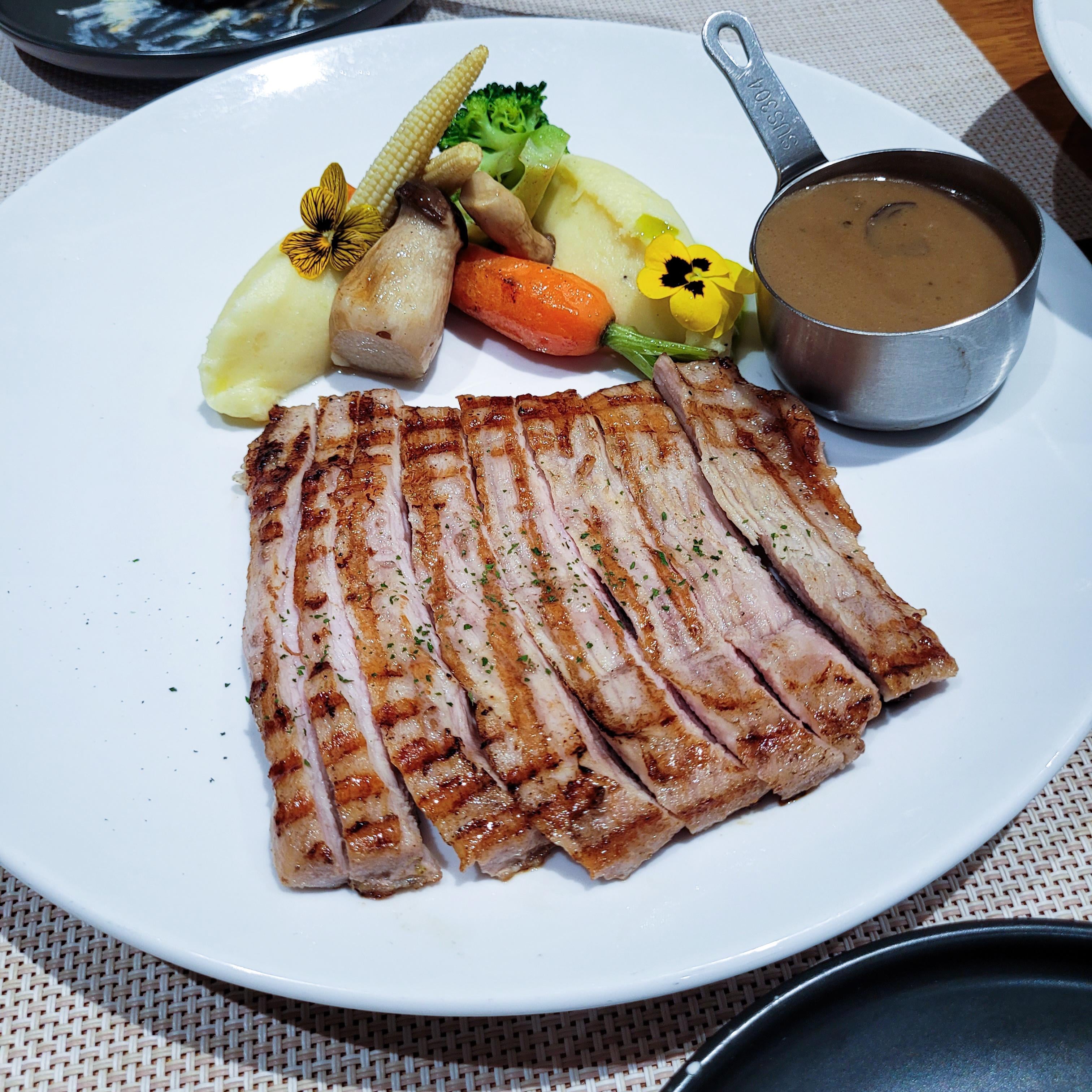 Grilled secreto pork with mushroom sauce