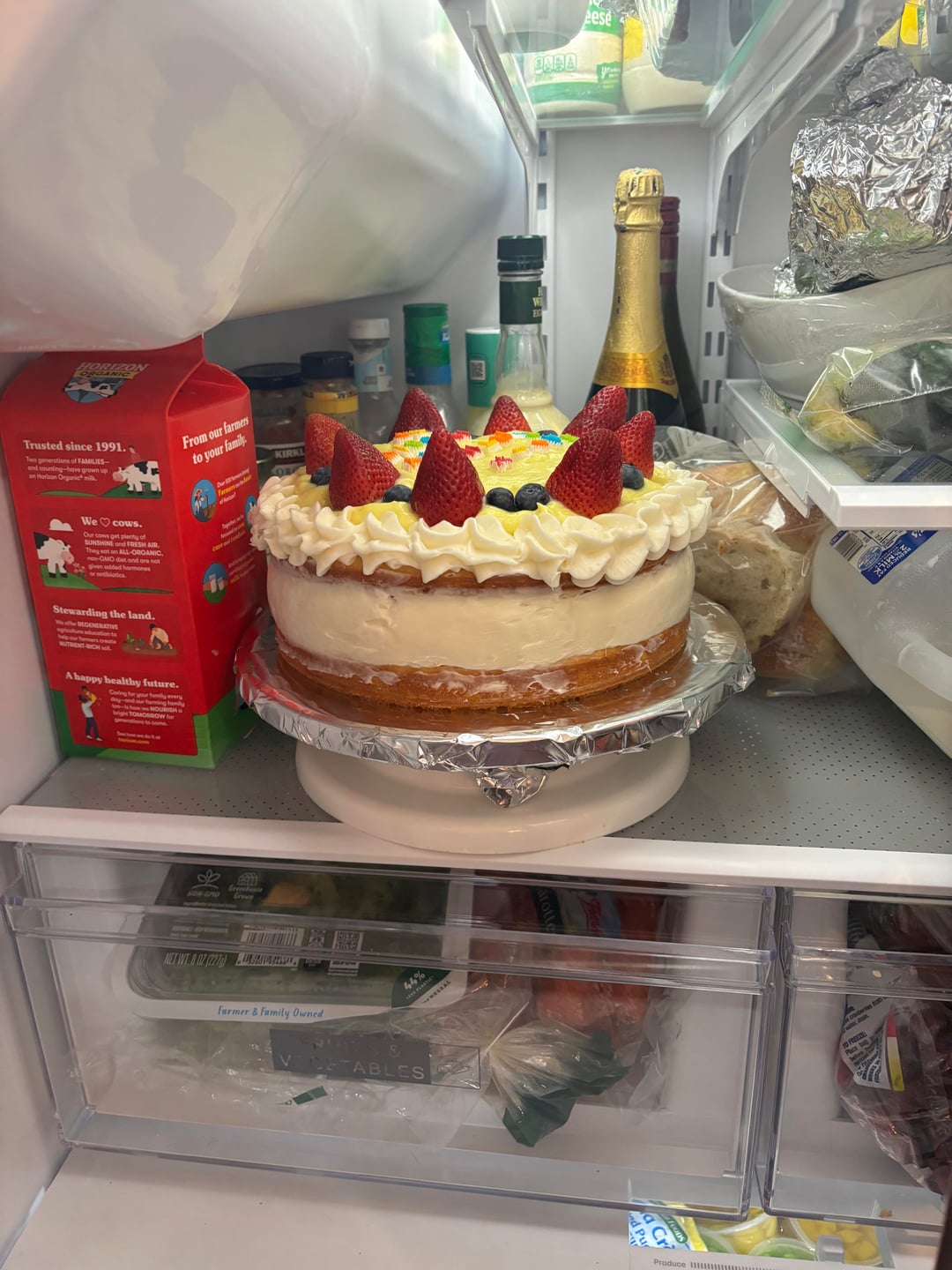 [homemade] I made Lemon vanilla and berry cake for my mom in law