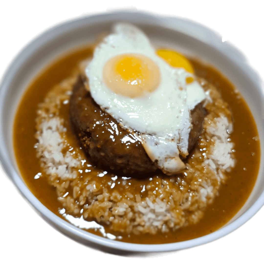Ground a mix of ribeye and tri tip at home then mixed it with onions, soy sauce, sesame oil, msg, salt, pepper and a few other things. Breaded in panko and deep fried, served on a bed of white rice, sauce poured over with two fried eggs on top. Delicious.
