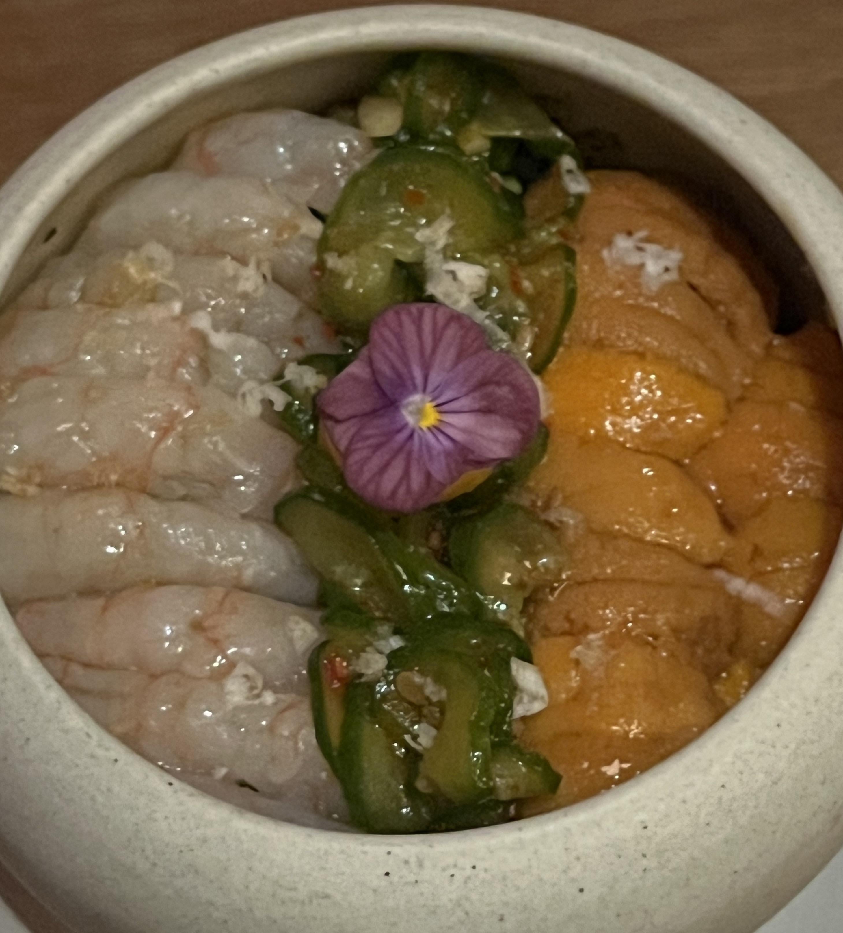 foodieandbulldogmama on December 17, 2025 3:10 pm sea urchin, spotted prawn, ikura, oiji, seaweed rice