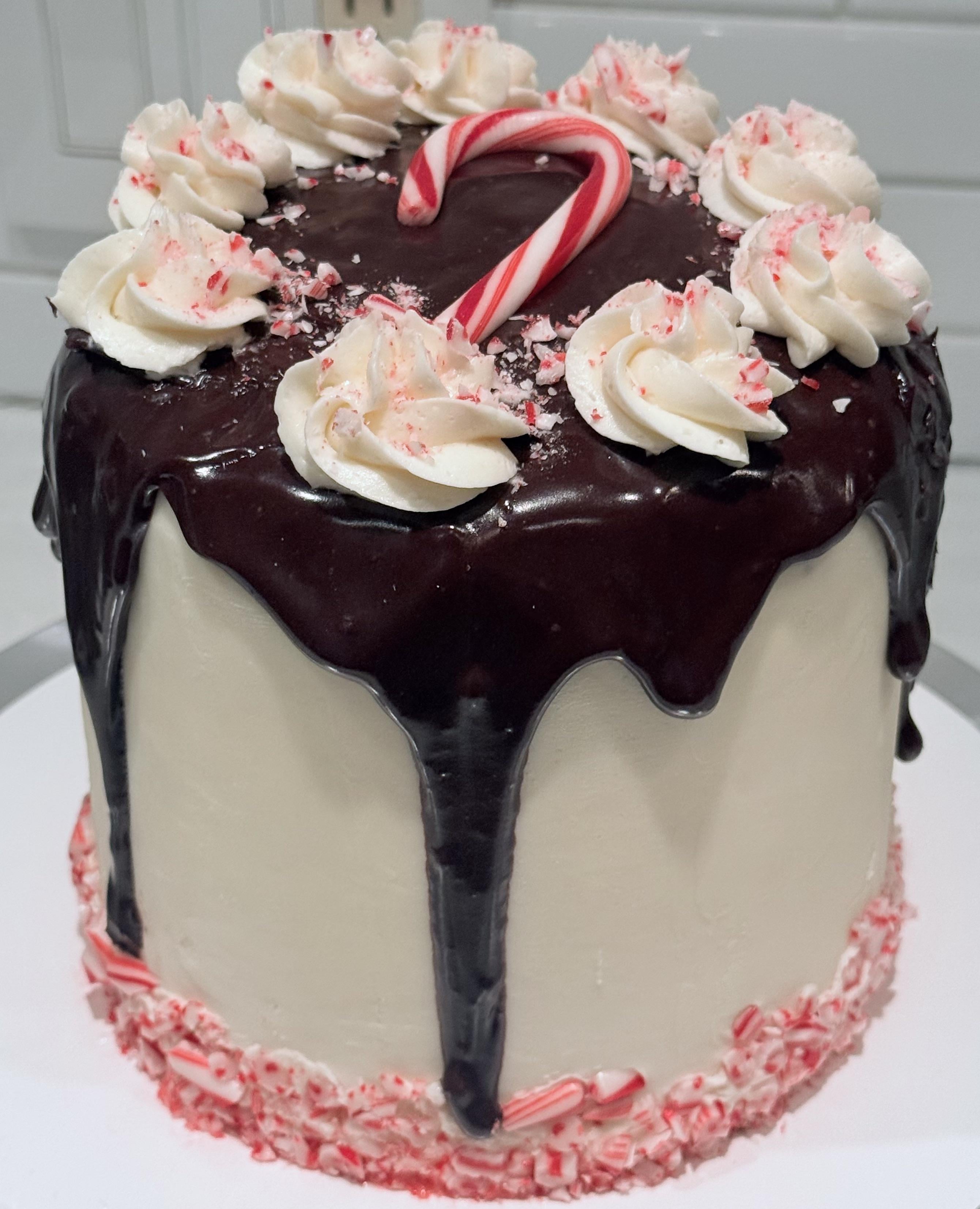 Chocolate peppermint cake, chocolate ganache, peppermint buttercream.