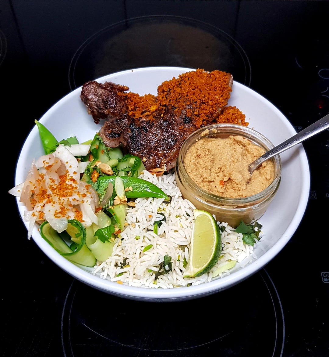 Adapted from a winning recipe I saw on MKR Australia – https://www.traditionalbutnot.com/recipes/mkr-recipe-sudanese-lamb-cutlets-with-peanut-sauce-and-cucumber-salad