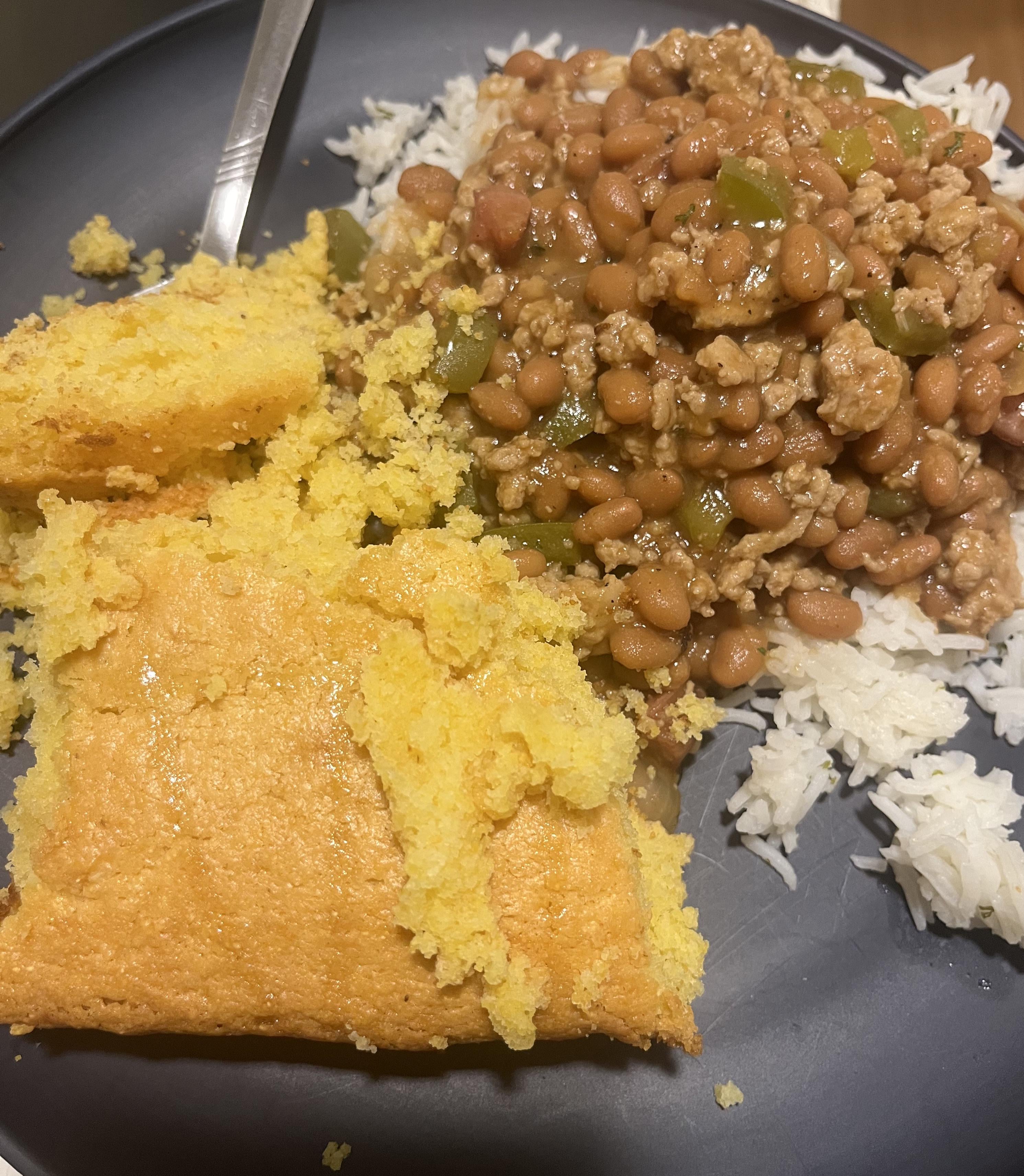 Baked beans w/Chicken Sausage and Ground Turkey and Honey Cornbread by FaithfulButterfly91 Dinner Tonight Tonight's Dinner