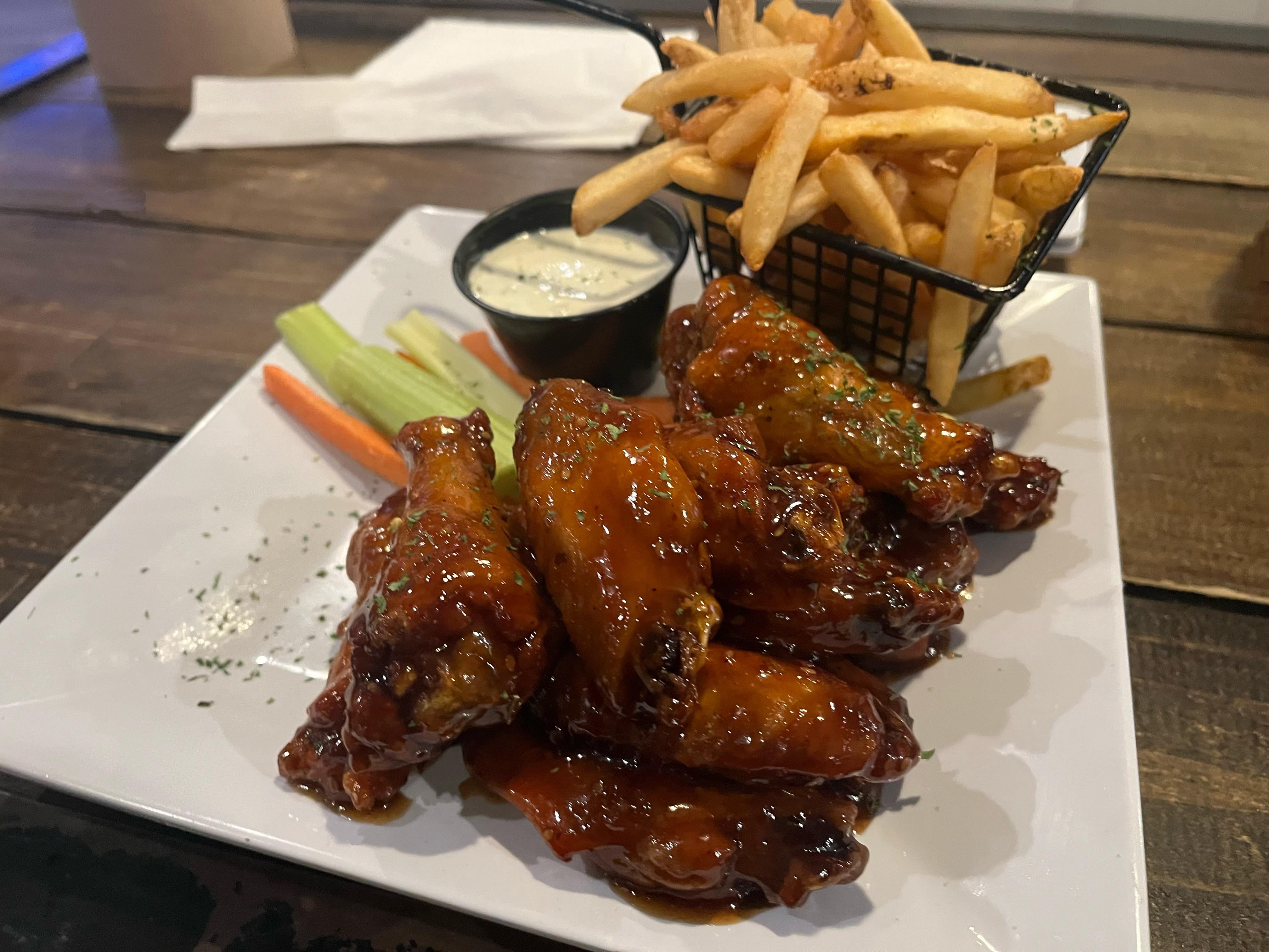 [i ate] traditional wings with a teriyaki glaze and a herb rub on top, served with fries, vegetables, and ranch on the side. by WonderfulMirror6505 Food