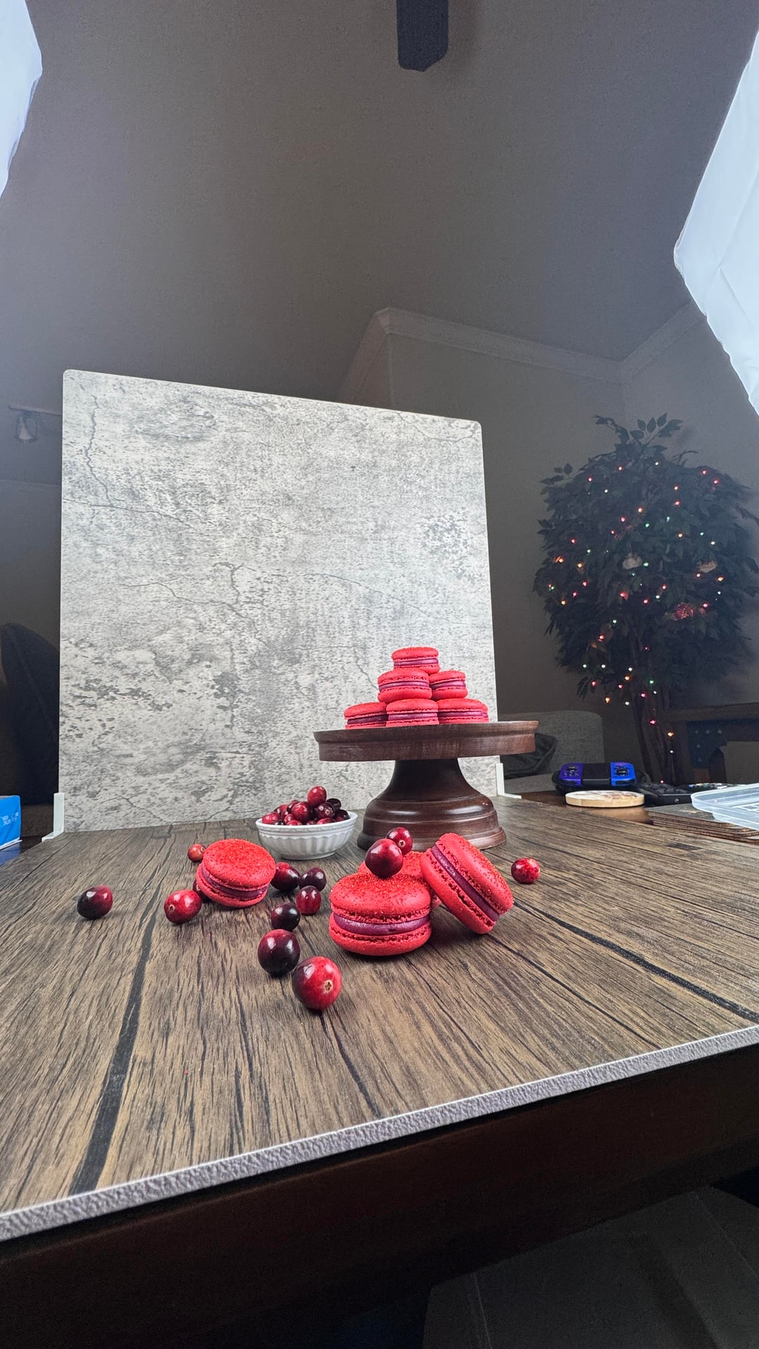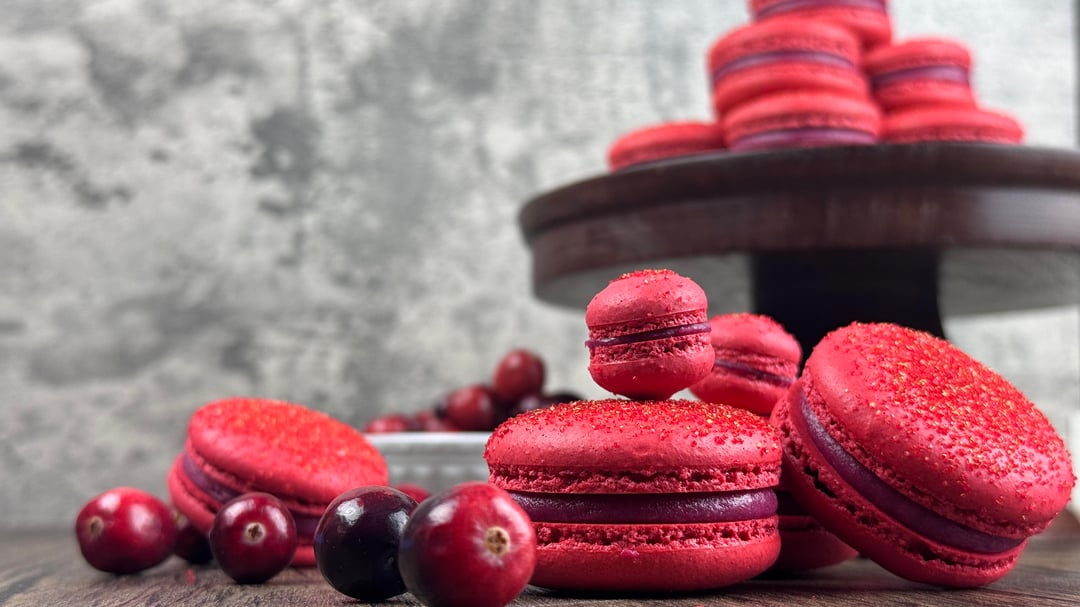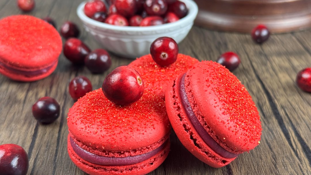 I used this recipe but I omitted the Cranberry Confit and just filled them with the Cranberry Ganache: everythingmarina [dot] com/cranberry-macarons/