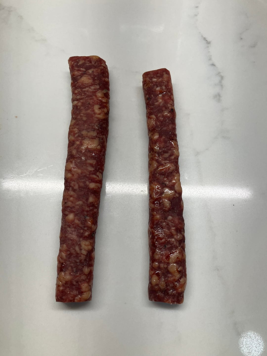 The first of the Landjager came out of the chamber. I dried it to 48%. It’s delicious! I have only one regret, there’s only 2 ready to eat. The recipe can be found in my previous post.