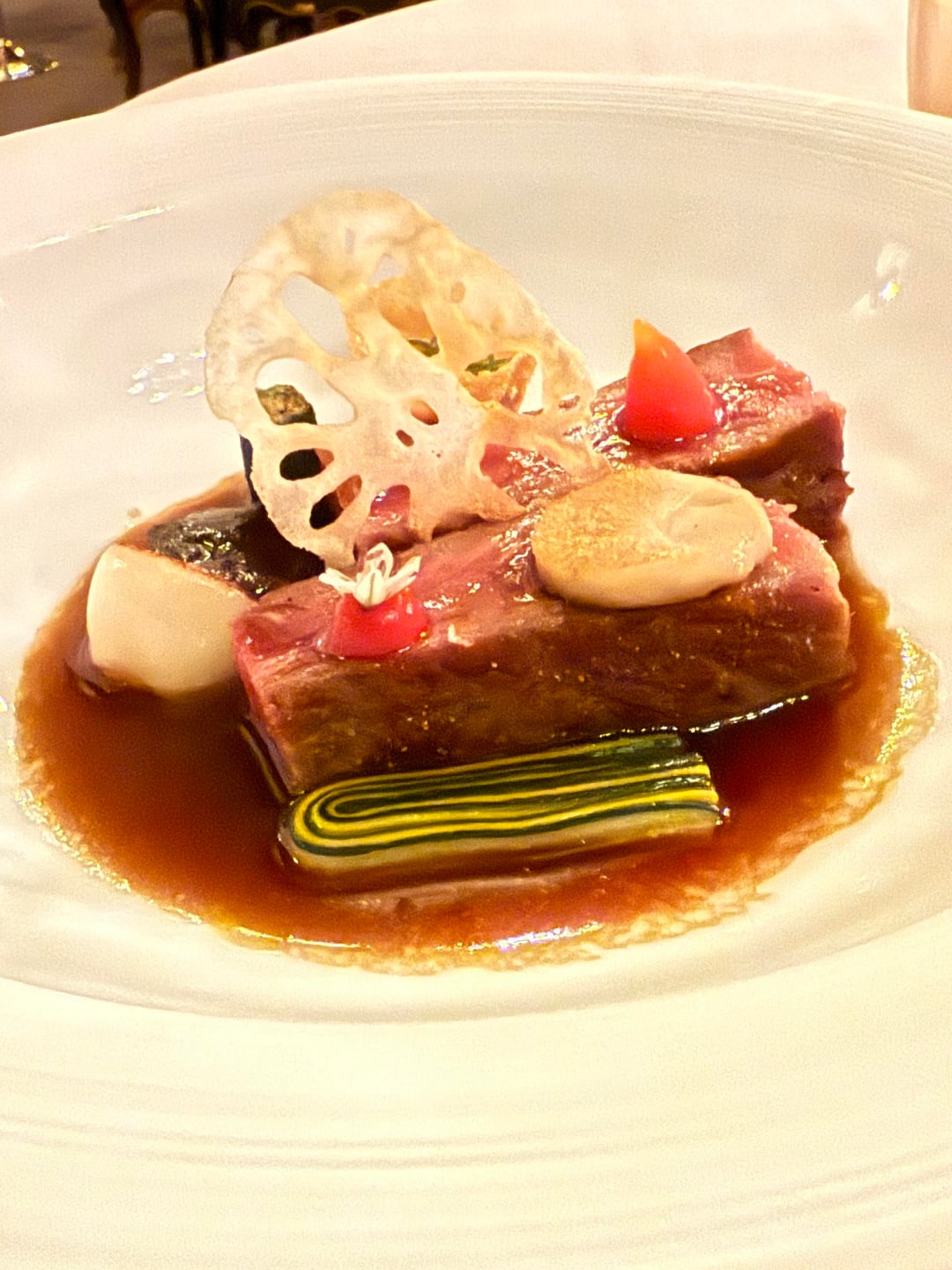 9: wagyu, lotus, courgette