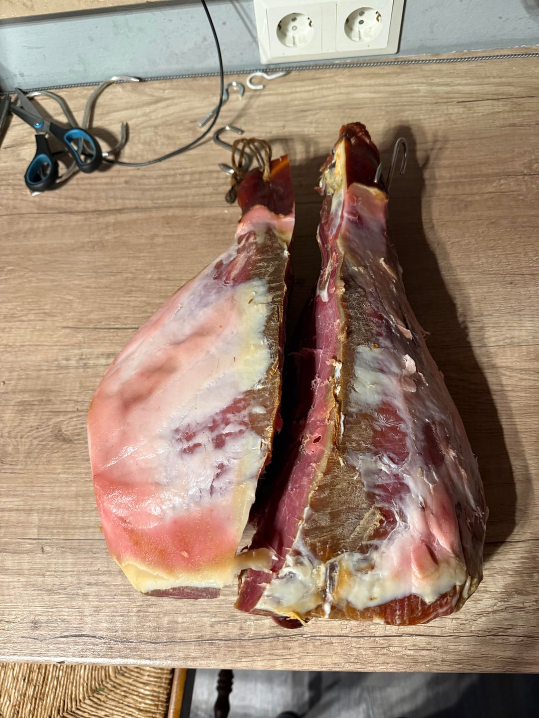 2. Beauty! My dad and I have salted and cured hams most of my life. We have raised pigs and made these salted hams, some we have hung for 3 years. So good! Enjoy