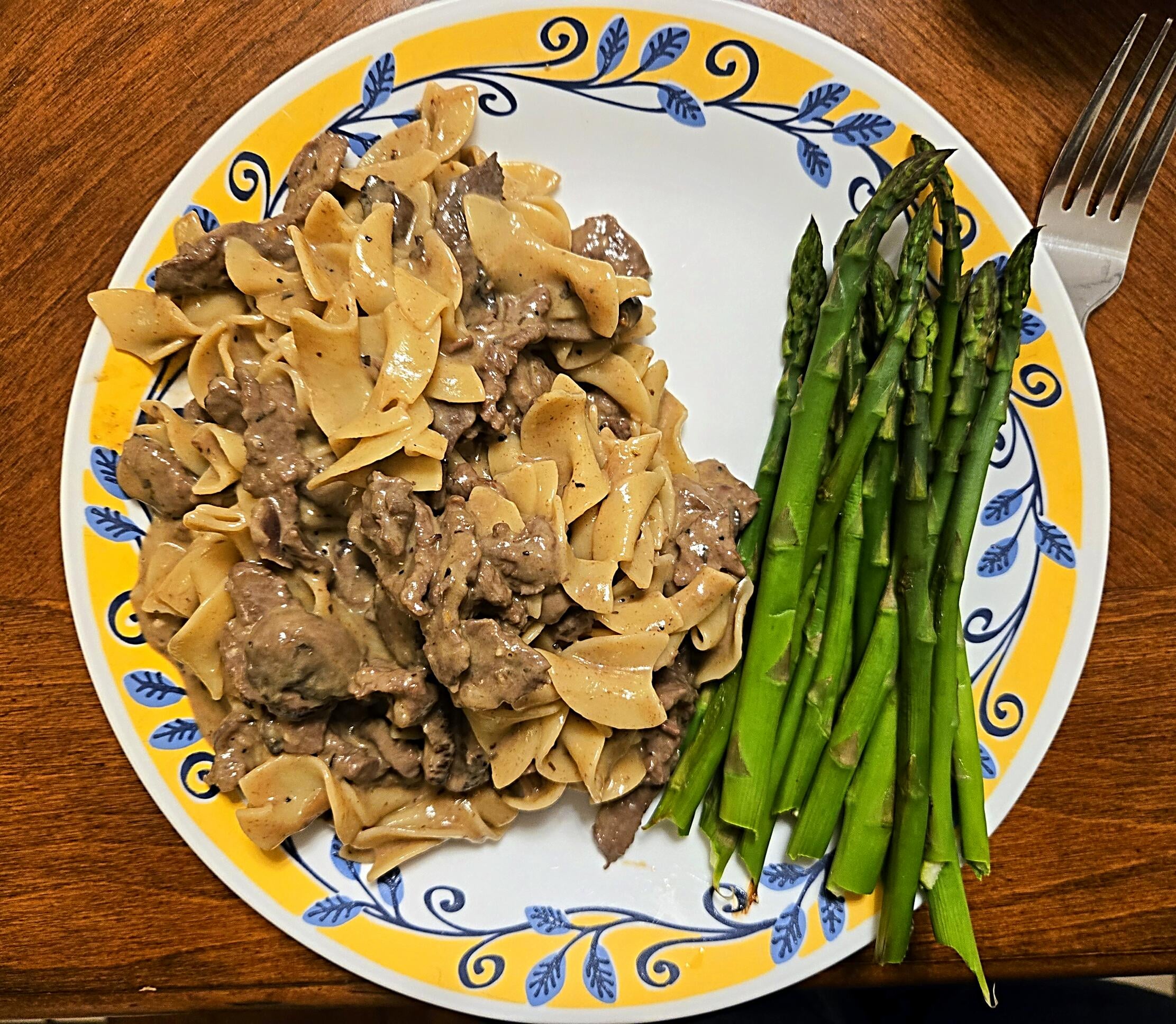 Beef stroganoff with egg noodles and asparagus on the side by SuburbaniteMermaid Dinner Tonight Tonight's Dinner