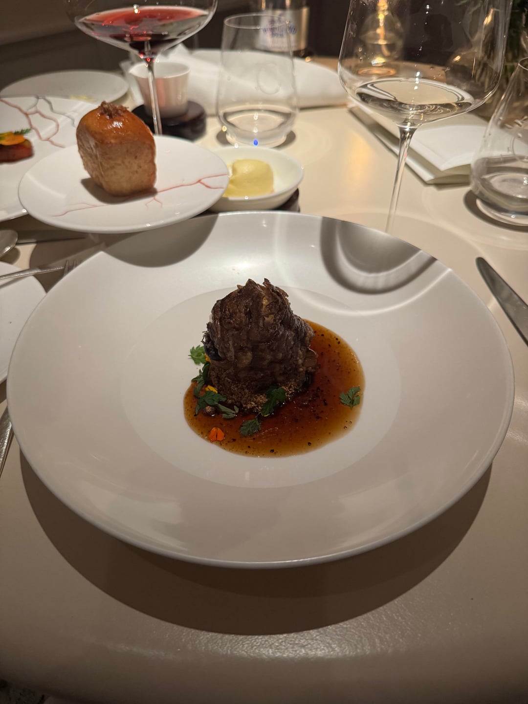 Core Apple, Toffee, Somerset Brandy (Classics) – stunning dish but oddly a bit bland for me. I was hoping for a bright and sweet explosion of apple flavor, but it was just consistently soft texture with muted apple flavor.