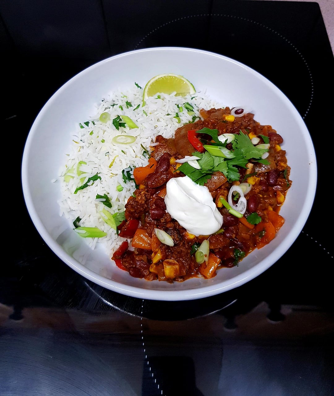 Chilli Con Carne, With Load of Peppers. Lime Rice and Sour Cream. by pink_flamingo2003 Dinner Tonight Tonight's Dinner