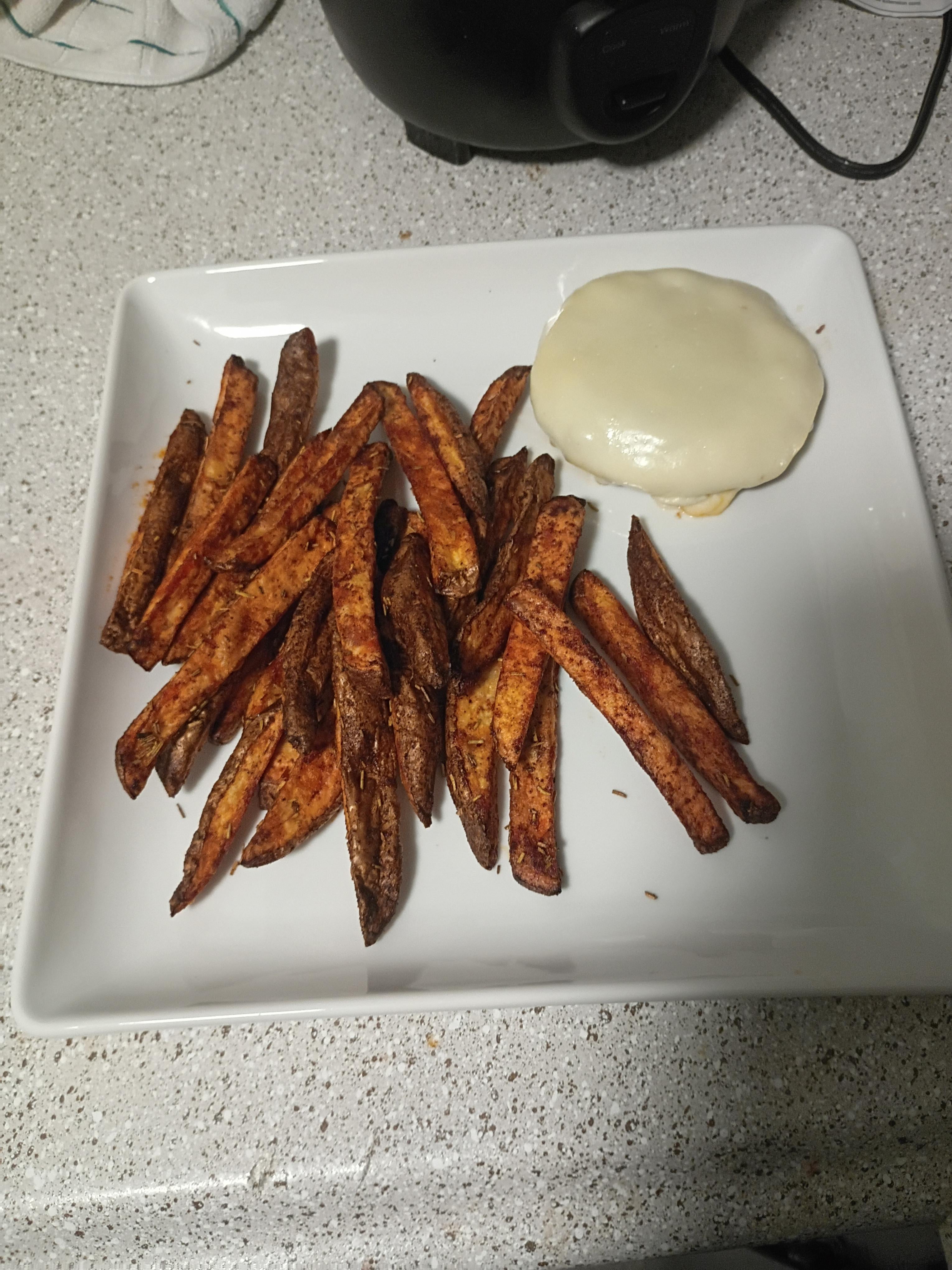 Beef hamburger patty smothered in muenster cheese served with homemade steak fries. by PierceHawthorne66 Dinner Tonight Tonight's Dinner