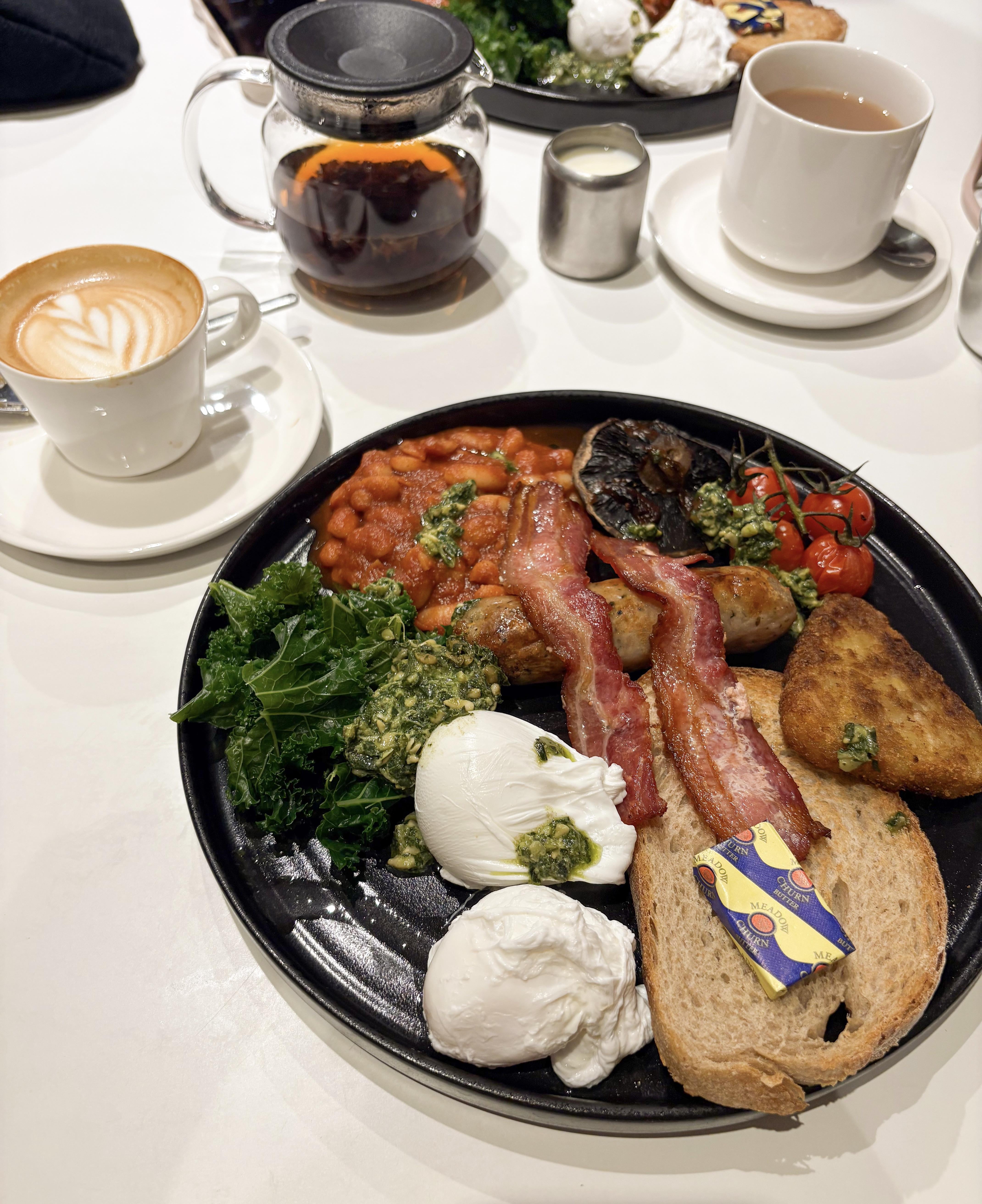 A superb take on the English breakfast, with miso mushrooms, smoky beans, kale and poached eggs topped with pesto by snooZygal Food Porn