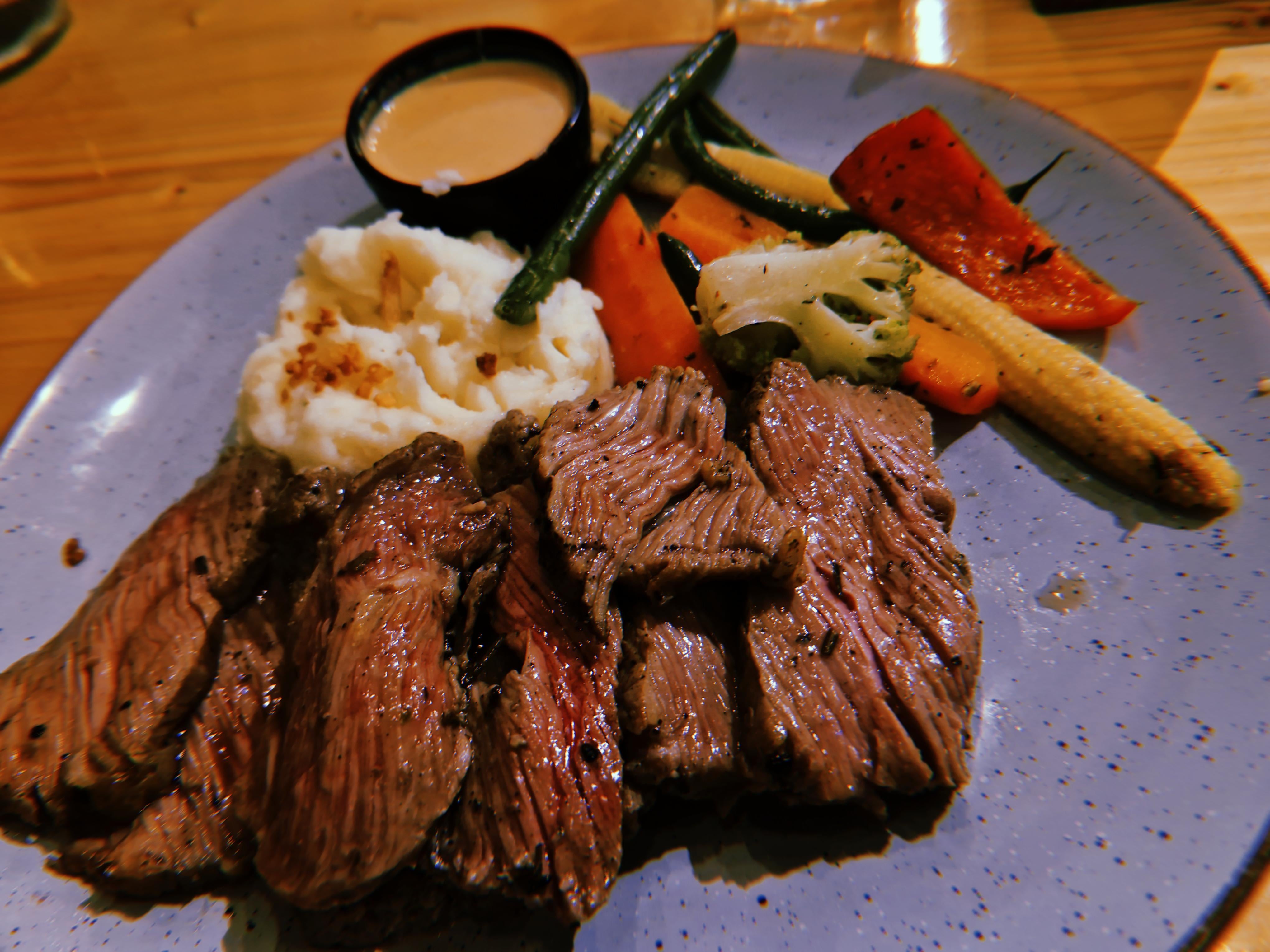 [Homemade] Beef steak, Mashed potato with a side of veggies and my mom’s special pumpkin sauce! by Ok-Hornet-3354 Food