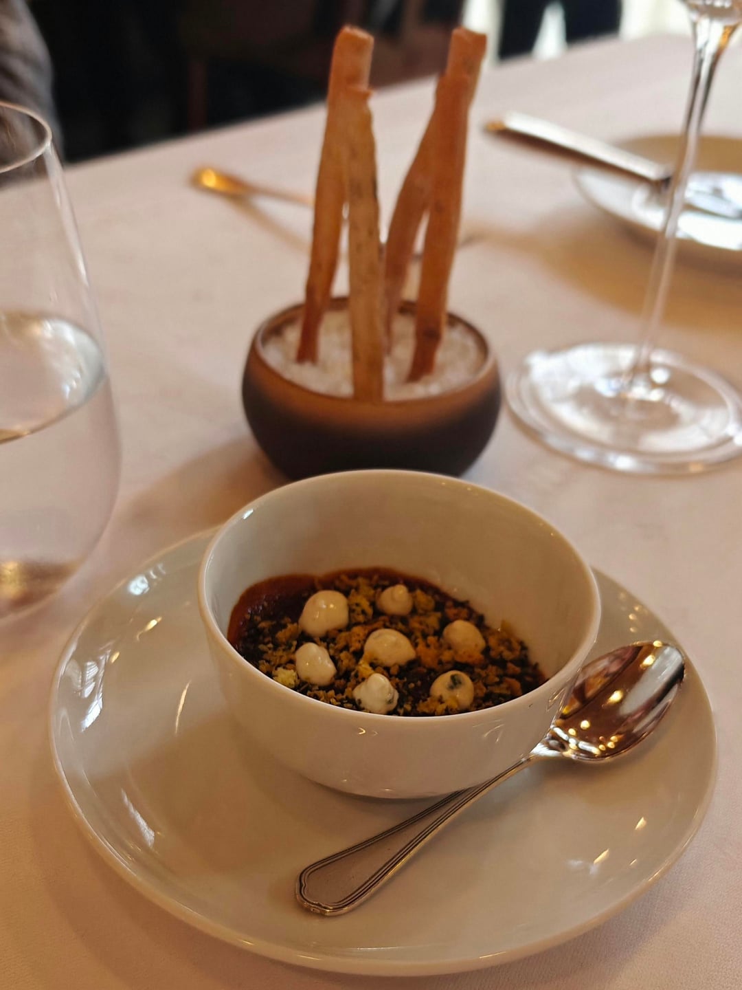 The main course, however, absolutely surpassed the rest. I was served venison with a mushroom tartlet, black sausage with salsifies, clasically combined with a red fruit compote. A timeless flavor combination, but served here with the perfect cuisson and a lot of depth of flavor.