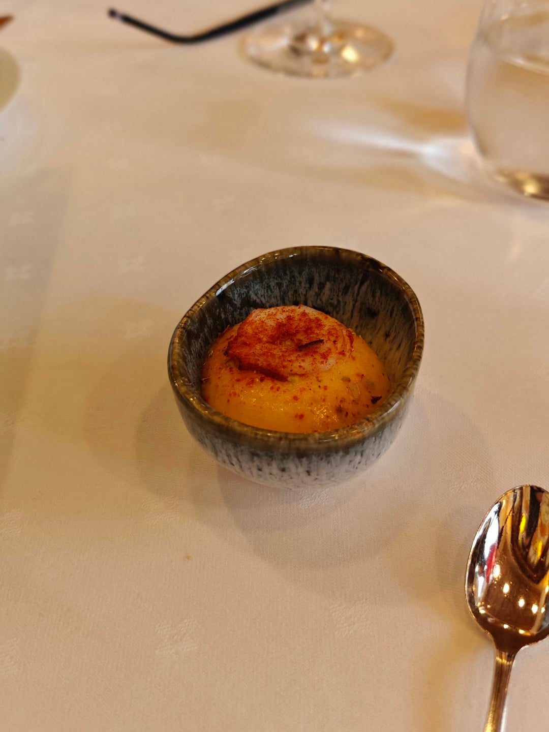 • Butternut squash puree topped with a shrimp