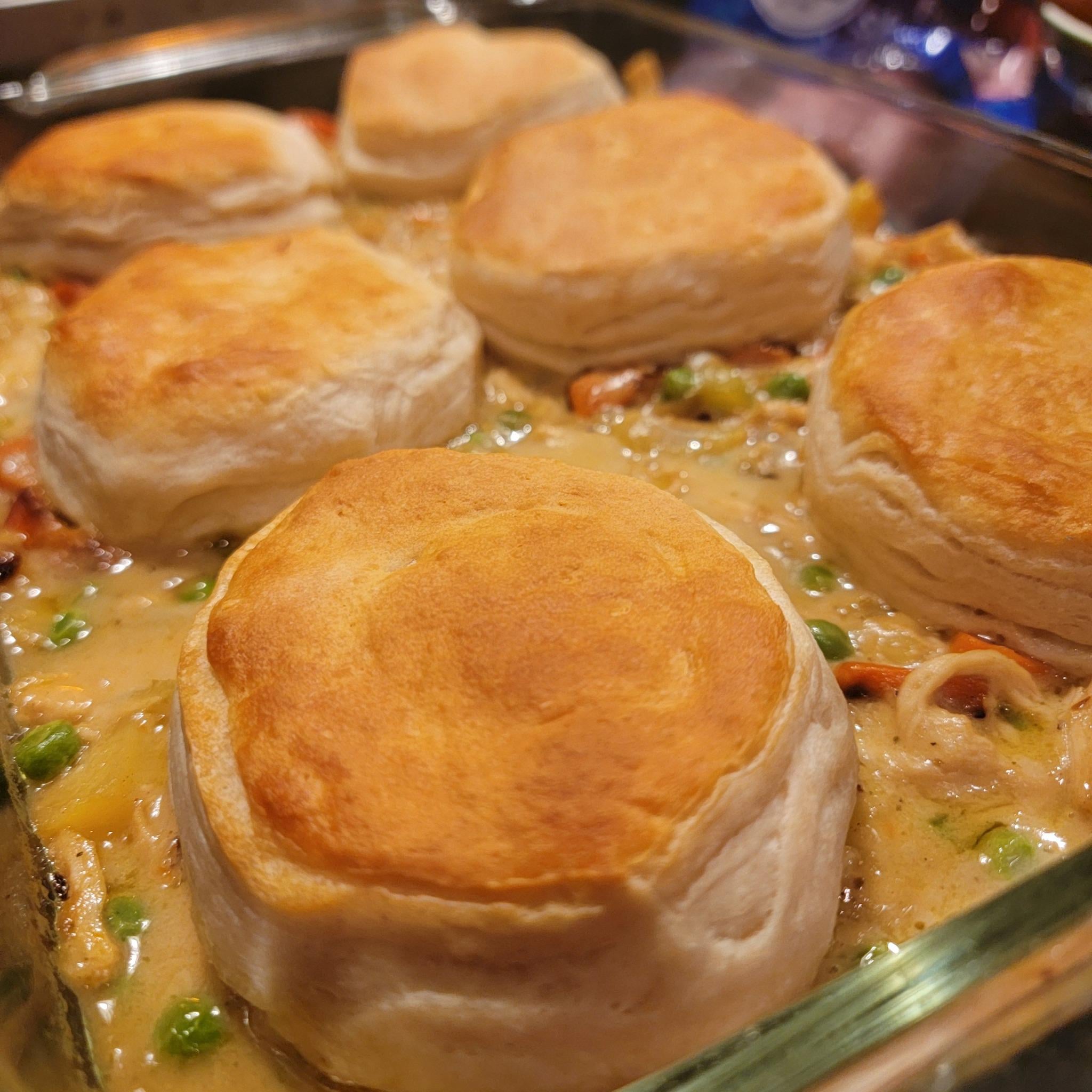 Chicken pot pie with biscuits.