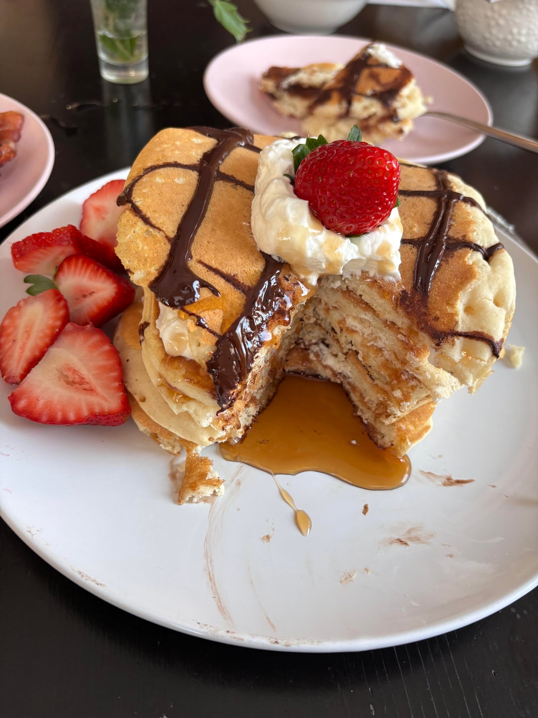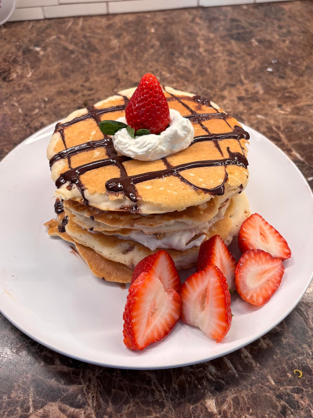 Pan Seared Pork Steak with Apple Cider Sauce and Caramelised Apples. Served with Gratin and Sautéed Brocolli. Finished with Crispy Sage Leaves.