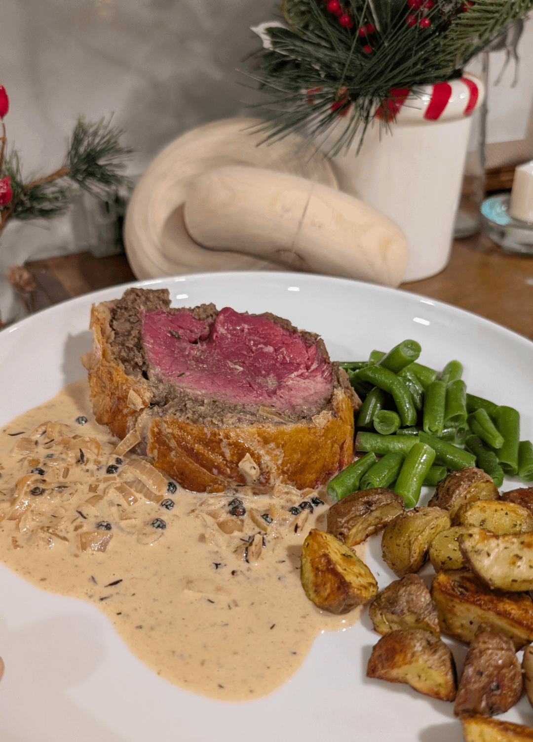 Beef wellington with black peppercorn sauce, green beans and roasted potatoes by iftheShoebillfits Dinner Tonight Tonight's Dinner