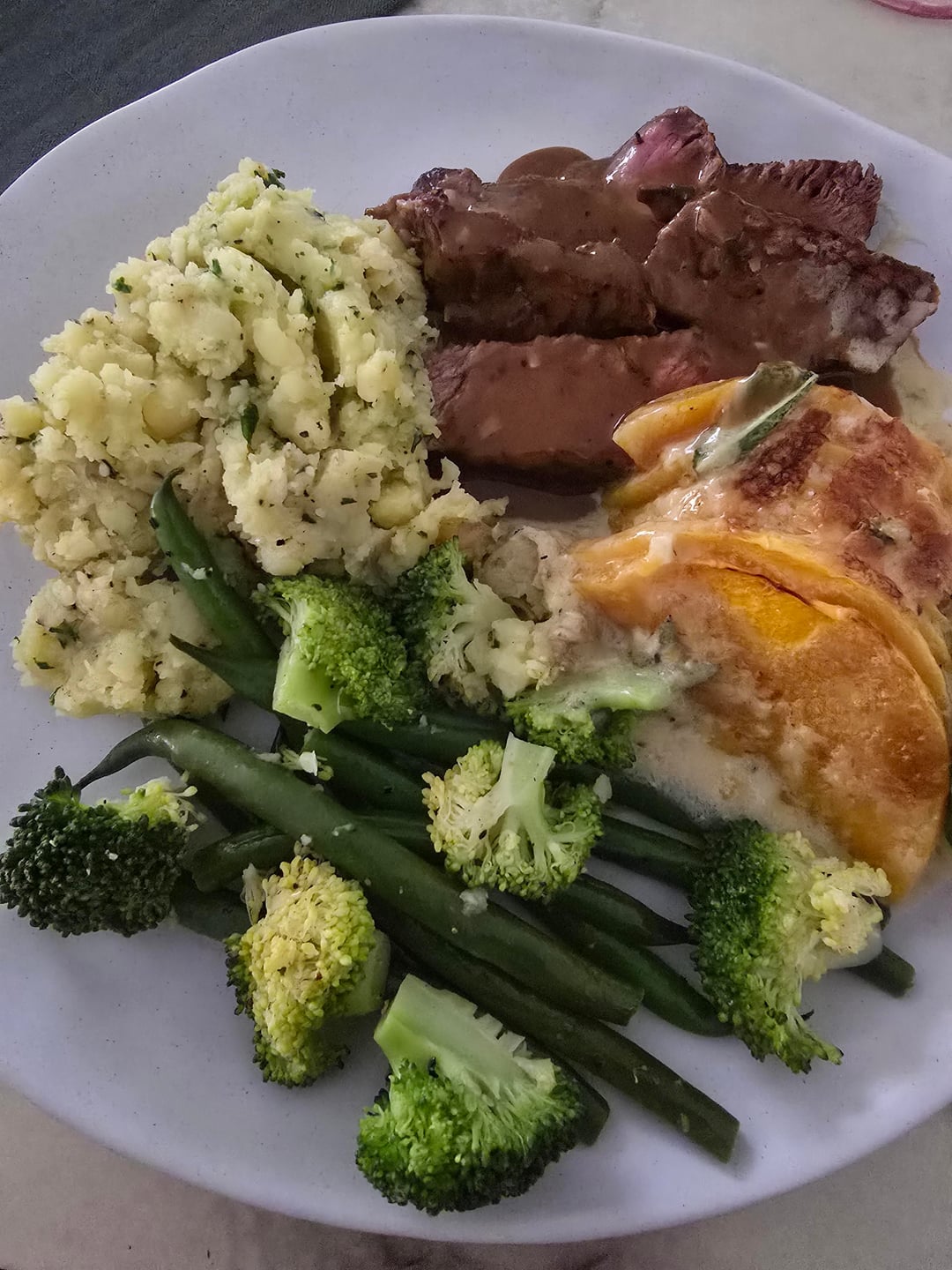 * Crushed potatoes with garlic and parsley (harvested at home yesterday!)
