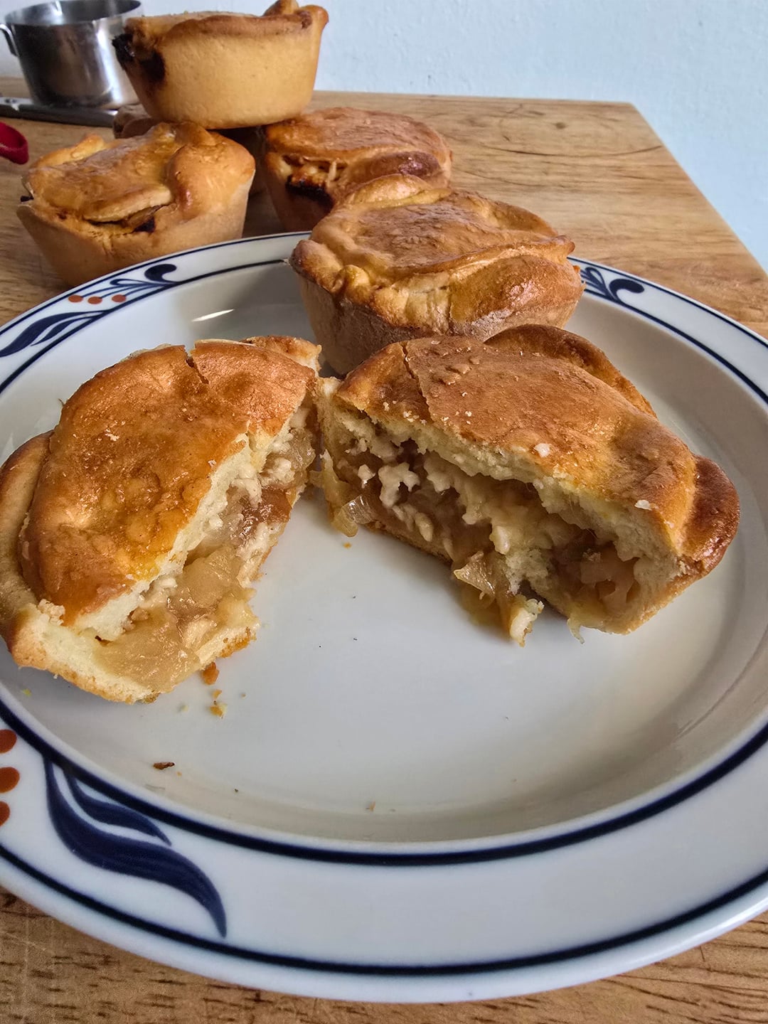 Yeast dough crusts. Caramelized onions. Gruyere cheese.