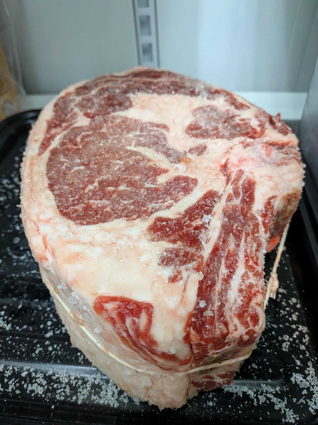 First time cooking a slab of meat this thick. Pretty dang happy with how it came out doing the typical reverse sear method at ~230 degrees fahrenheit, then convection blasting at 550 degrees after a brief rest while the meat got to about 120 degrees before getting it to 125+.