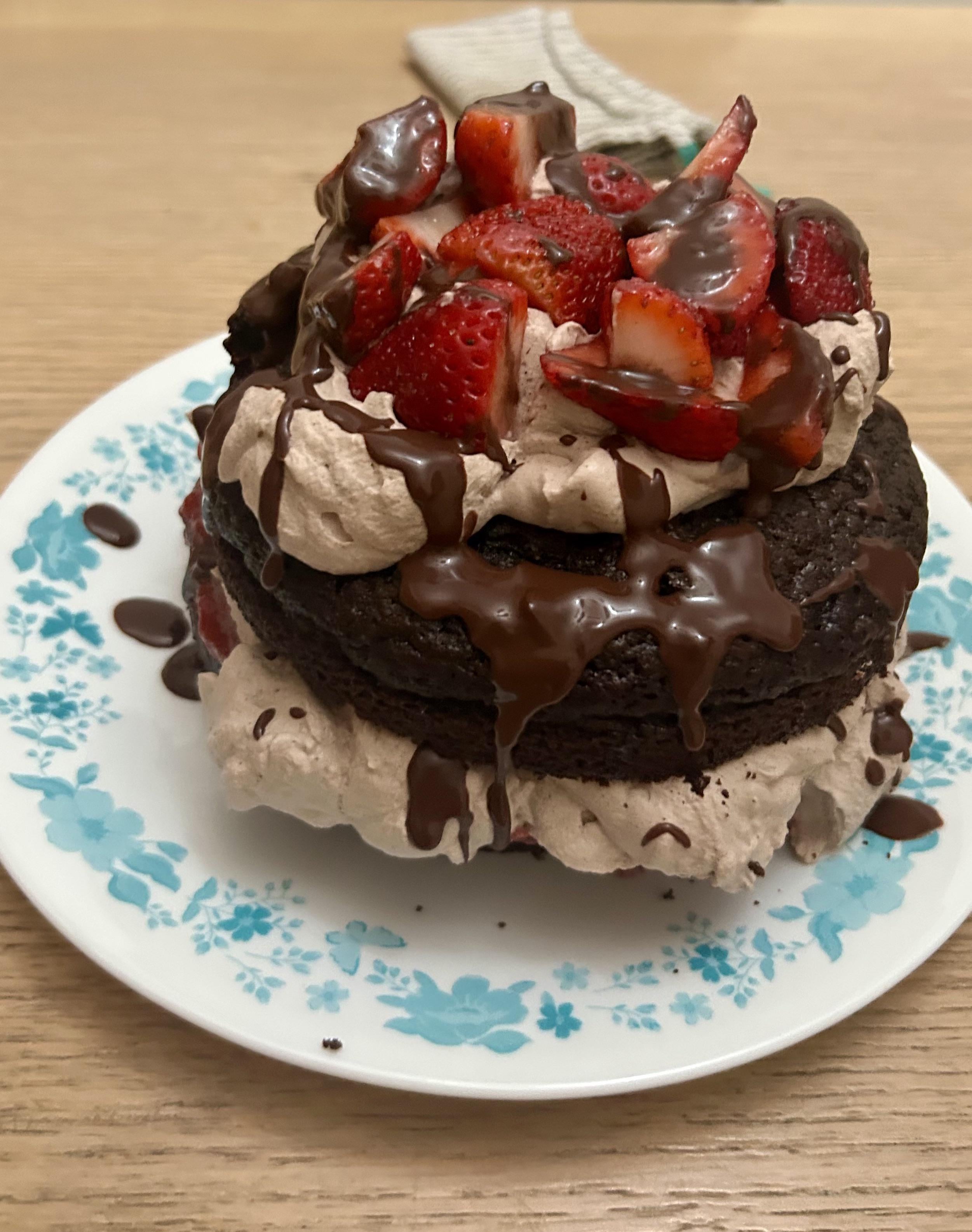 Chocolate Victoria Sponge with chocolate cream, strawberry raspberry compote and ganache drizzle by Createsalot Food Porn