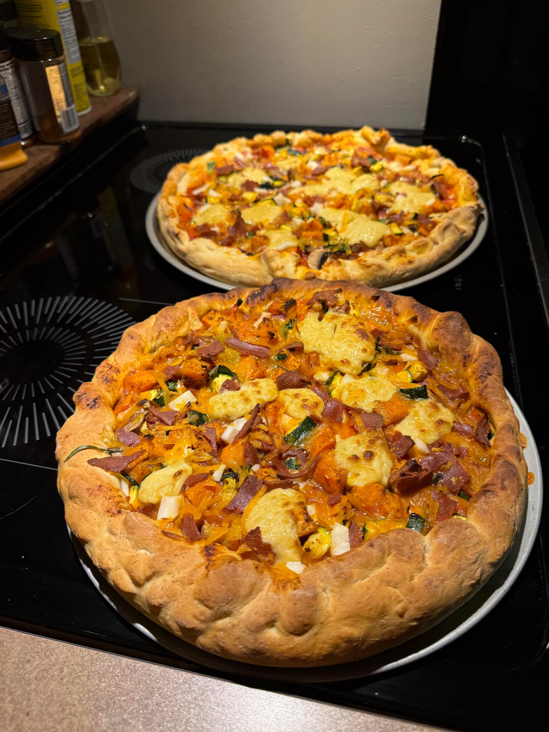 Raclette pizza! We made way too much food for our christmas dinner so we decided to make those gorgeous pizzas with the leftovers by isa_vegchick Vegan Food Vegan Food Porn
