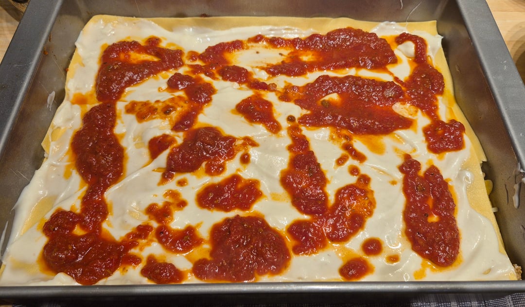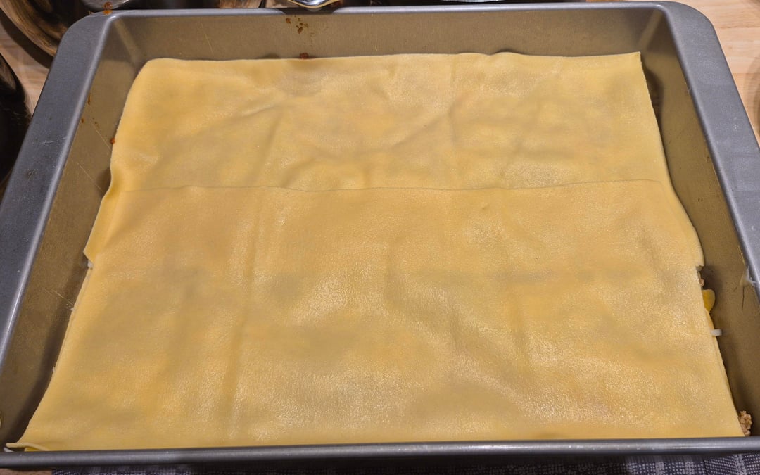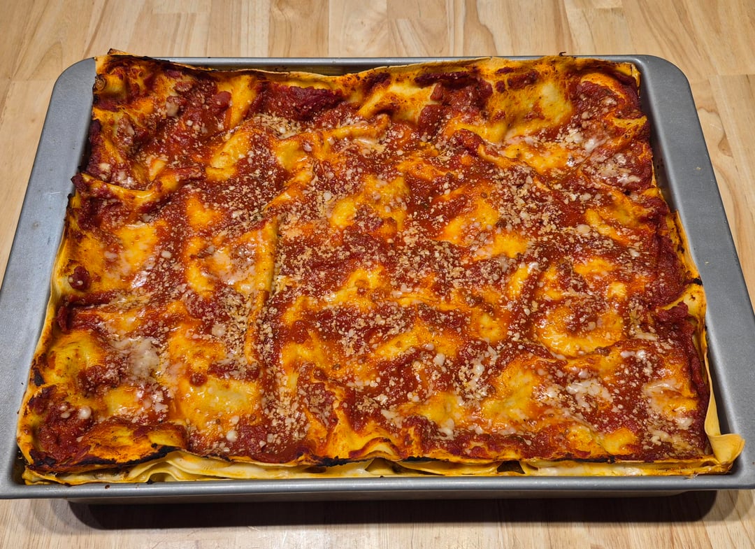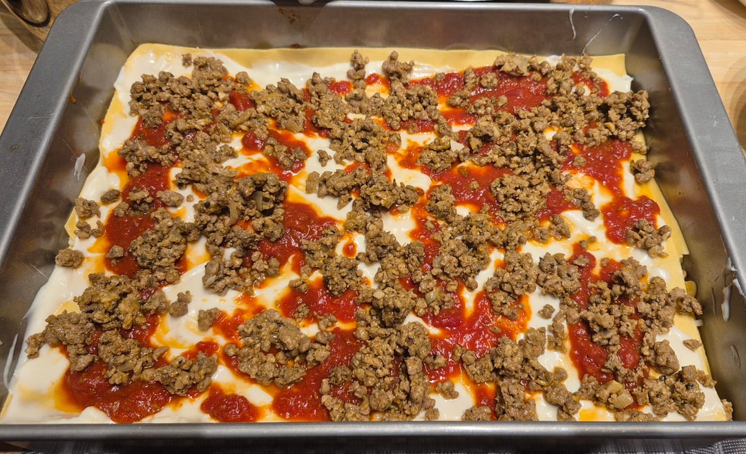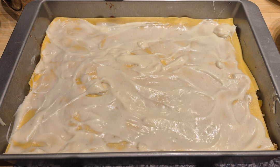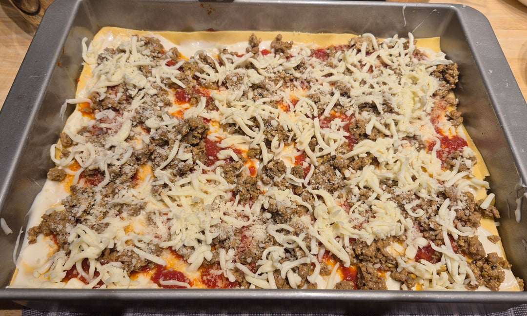 Homemade pasta, besciamella, sausage, and sauce. The mozzarella, Parmigiano Reggiano, and Pecorino Romano were shredded/grated just before. I can never get a great pic of the cross section but this is one of my favorites to serve. by cucinaforte Food