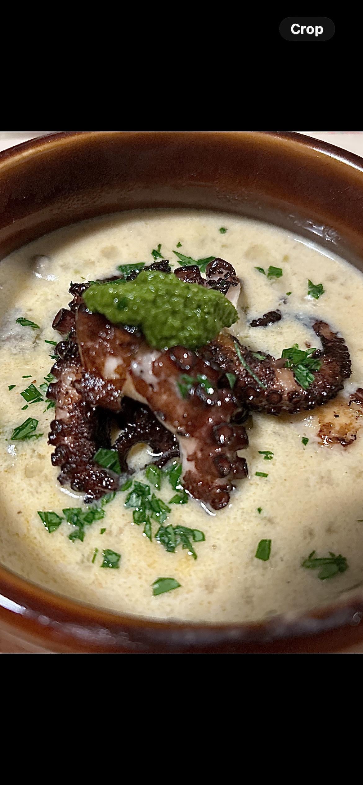 Pan Seared Pork Steak with Apple Cider Sauce and Caramelised Apples. Served with Gratin and Sautéed Brocolli. Finished with Crispy Sage Leaves.