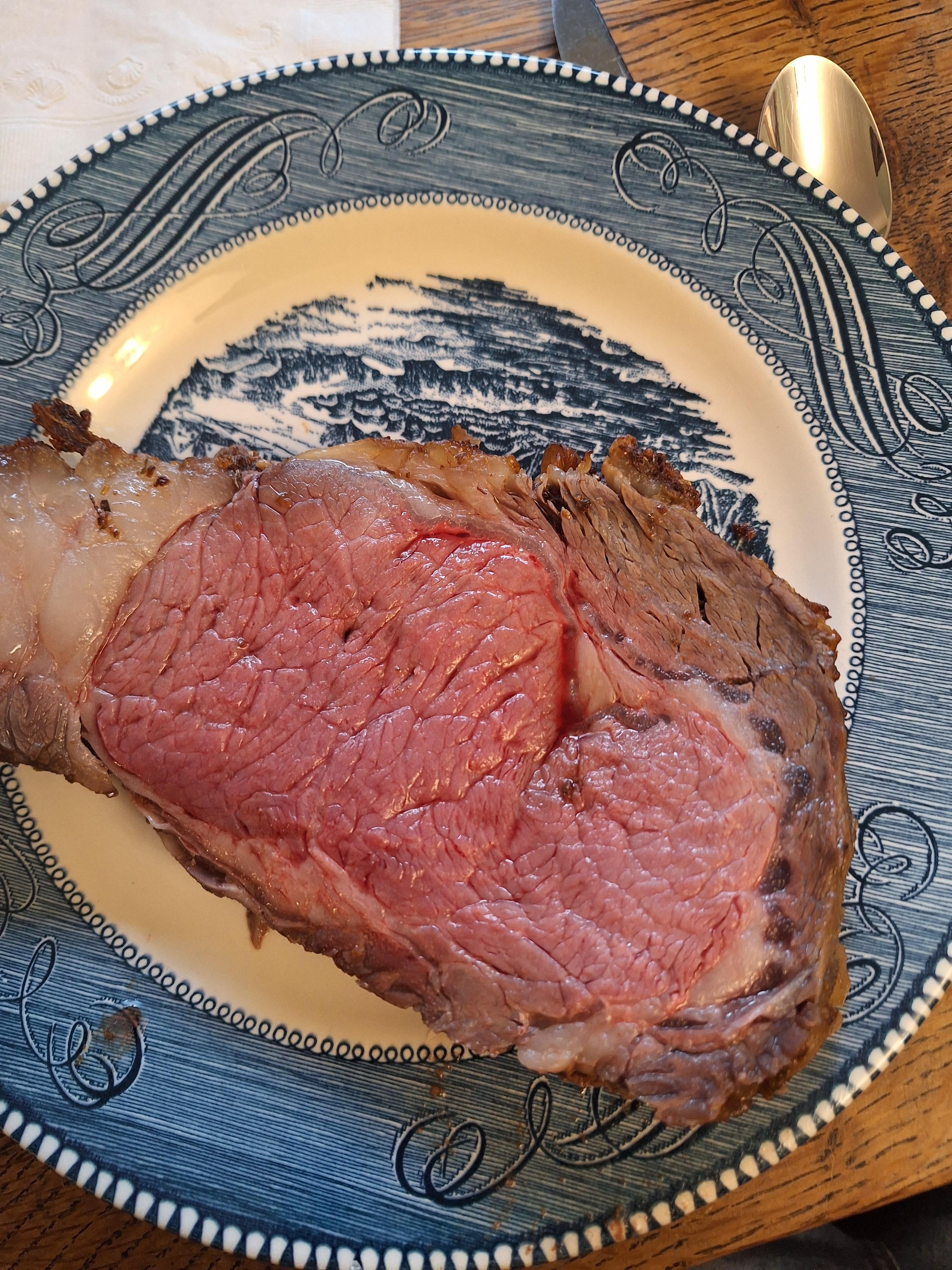 Son-in-law made this prime rib just perfect for Christmas dinner.