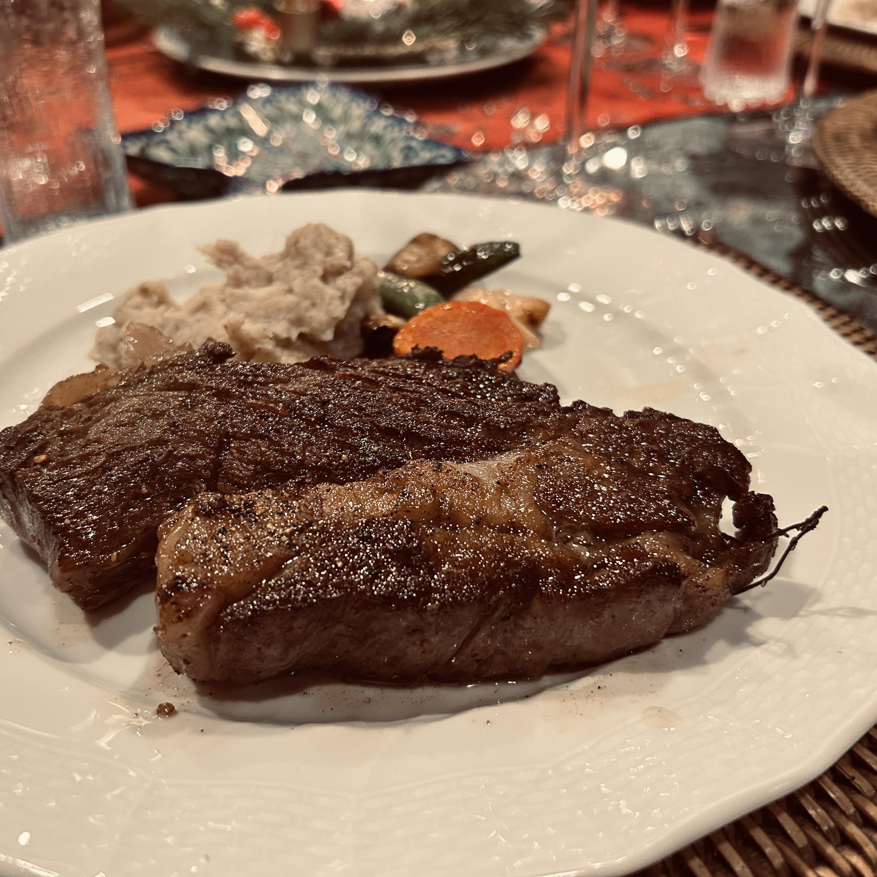 Wagyu steak with smashed potatoes with shiitake mushrooms and veggies. by Lazyoldcat99 Dinner Tonight Tonight's Dinner