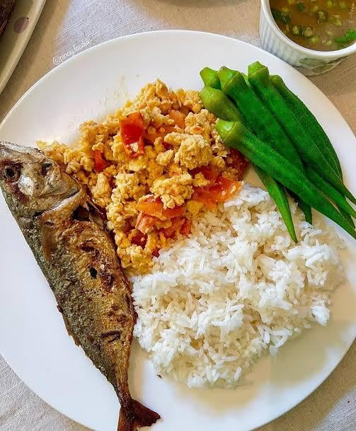 Simpleng almusal— pritong isda, nilagang okra, itlog at sinangag. Maari mo pang samahan ng mainit na kape. ☕