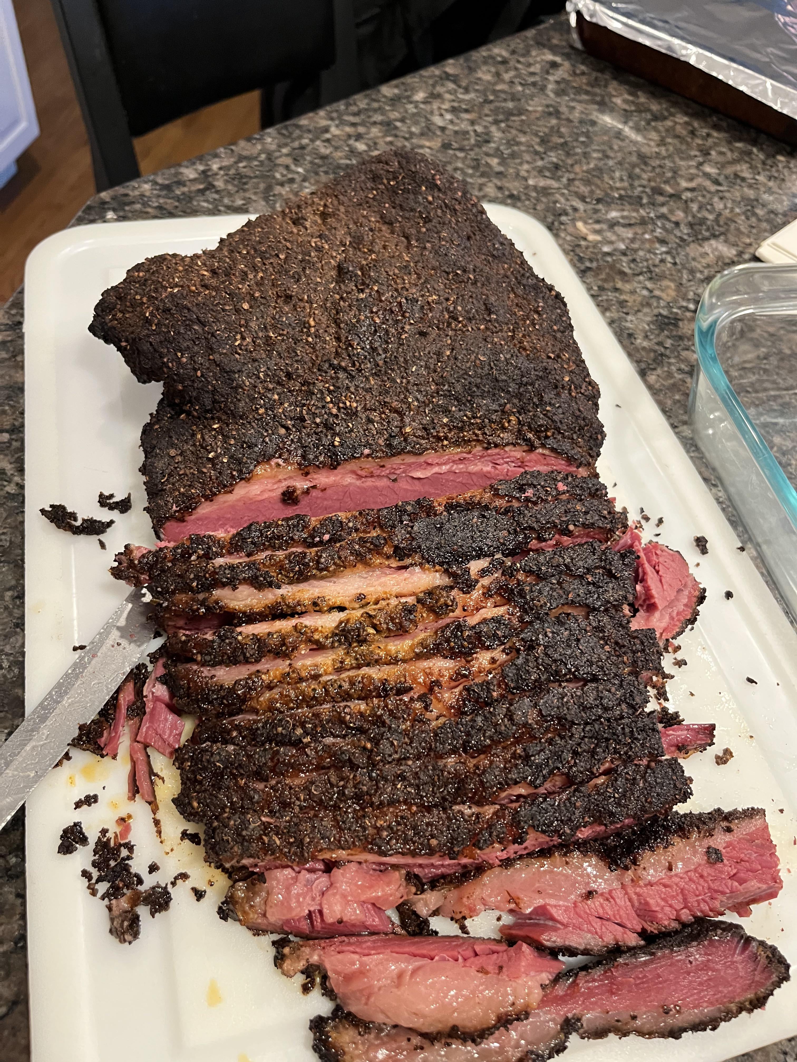 Brined and smoked a pastrami to go with some latkes for a belated Pastramukah celebration. 6 day brine followed by a 14 hour cook, definitely an annual tradition that will continue. by Fridge2Go Food Porn