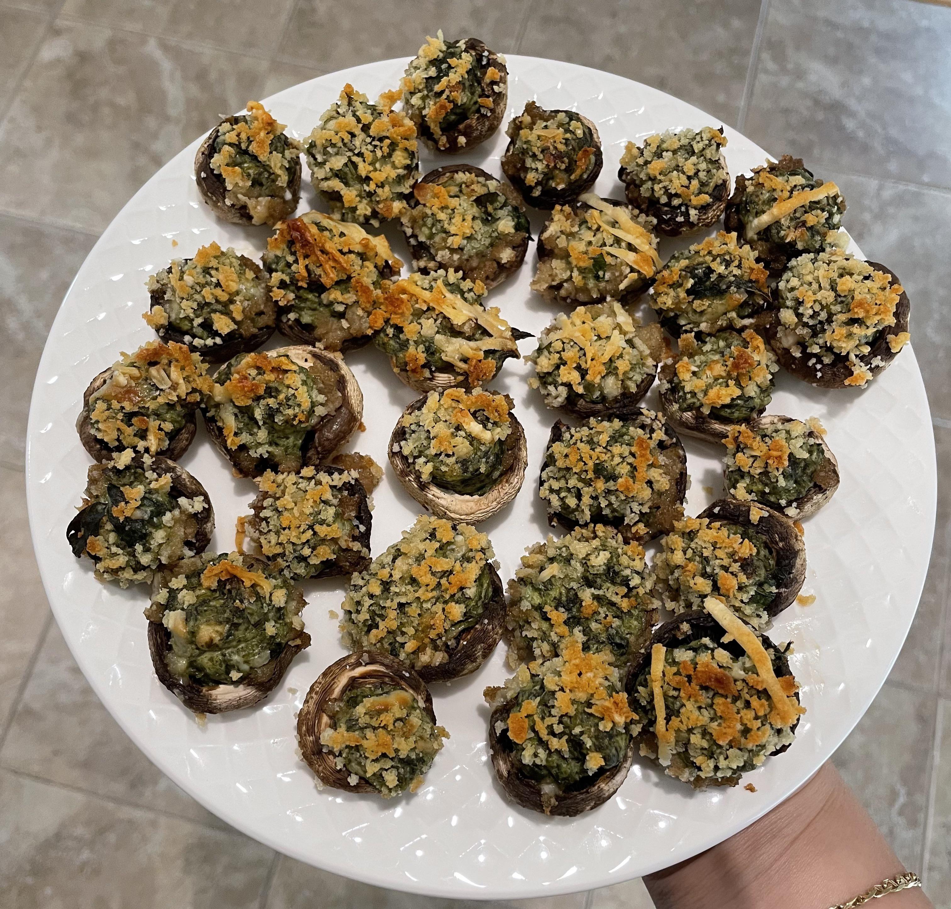 NOTE: you can use there mushroom stems, chop and saute with garlic and spinach I just thought of this after I made them!!