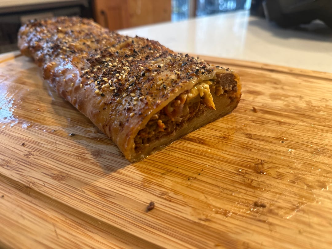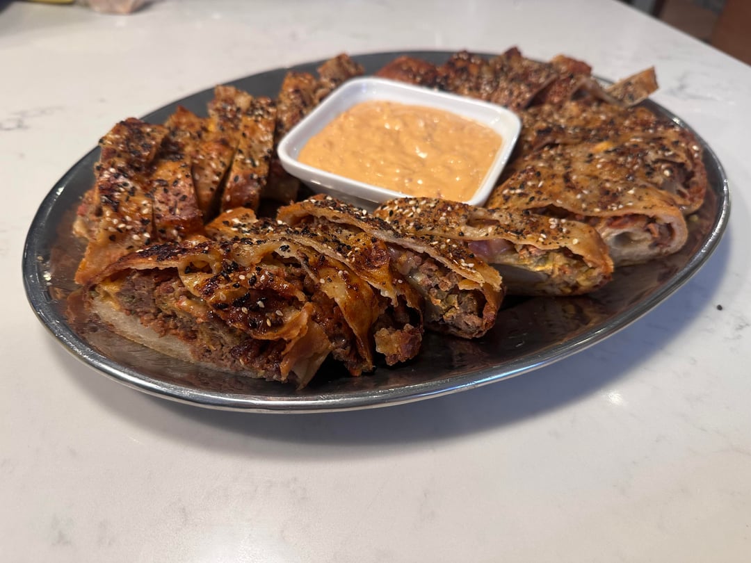 I should’ve used leaner beef. I wanted to use raw beef for the bread to make more of a burger texture as apposed to precooked. It was a little greasy but very delicious otherwise.