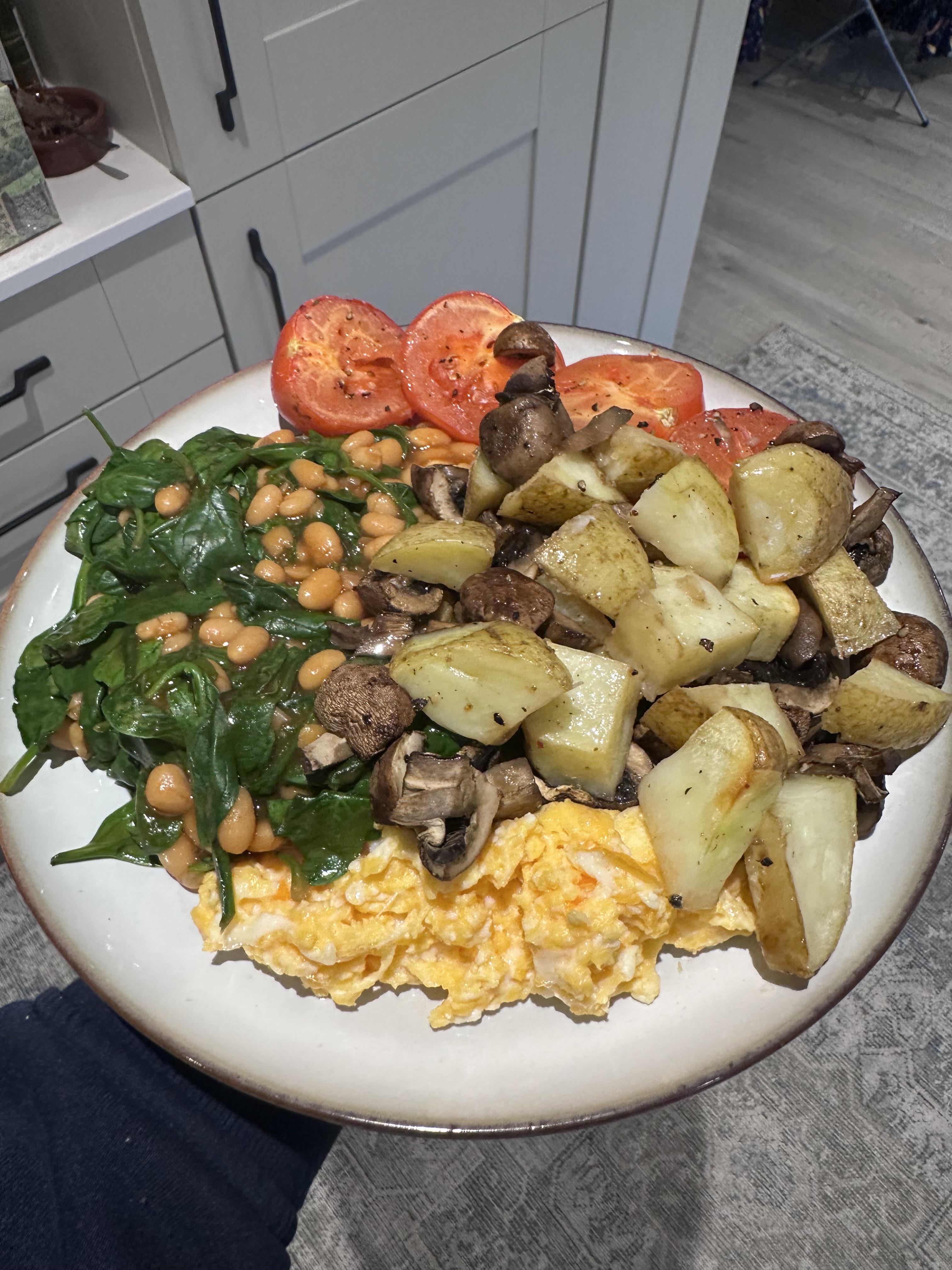Oven roasted potatoes, tomatoes and mushrooms. 2 eggs, beans and a handful of spinach. Super filling. by Londoner1982 1500 Calorie 1500 Calorie Diet 1500 Calorie Meal Plan 1500 Kcals 1500 Kcals a day 1500 Kcals per day 1500 Kilocalorie 1500 Kilocalorie a day 1500 Kilocalorie per day 1500isplenty