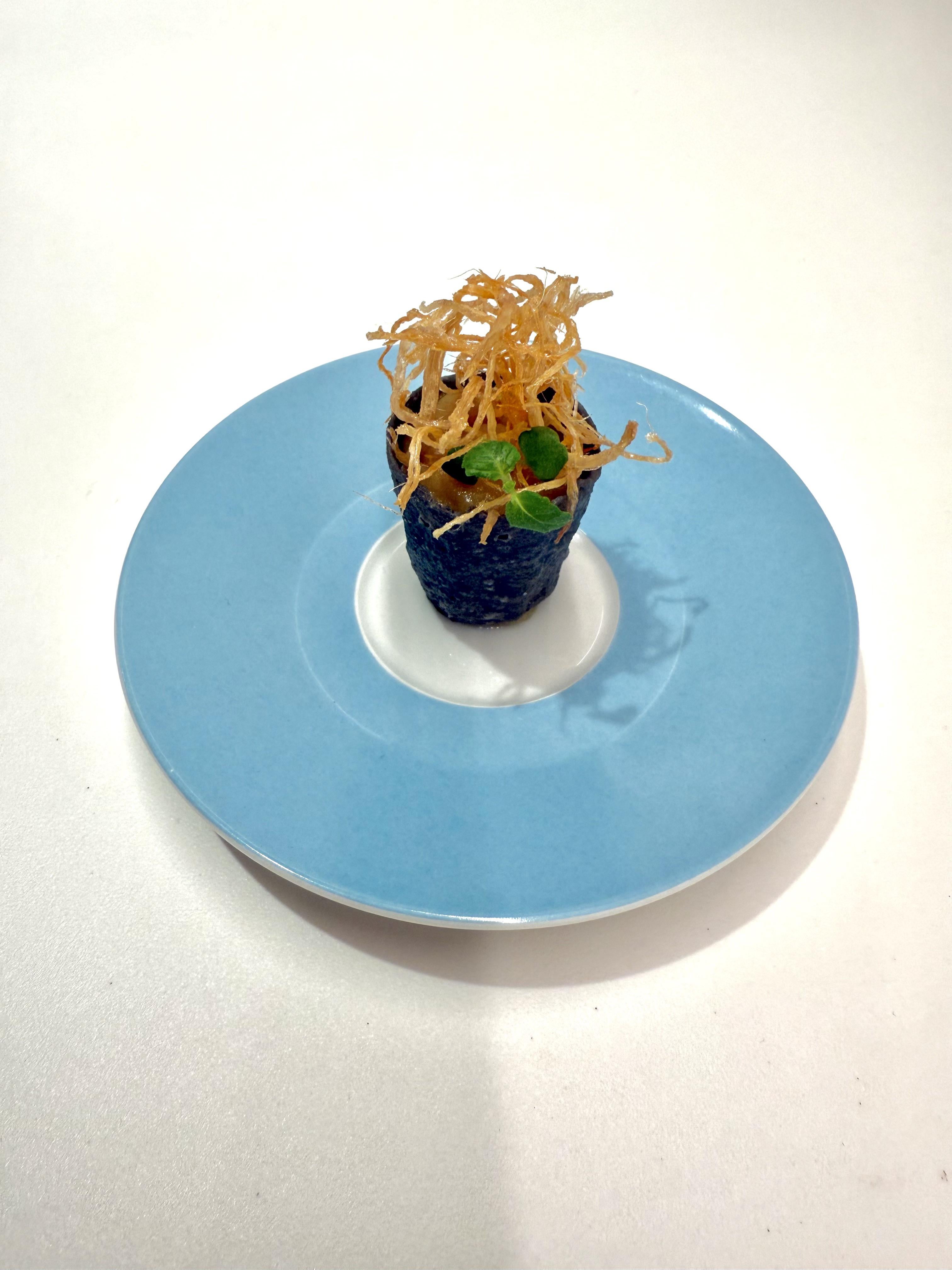 Chicken with Bacon, Sage and Figs – Spin on Saltimboca. Fondant Potatoes and Asparagus. Served with Fig Balsamic Sauce.