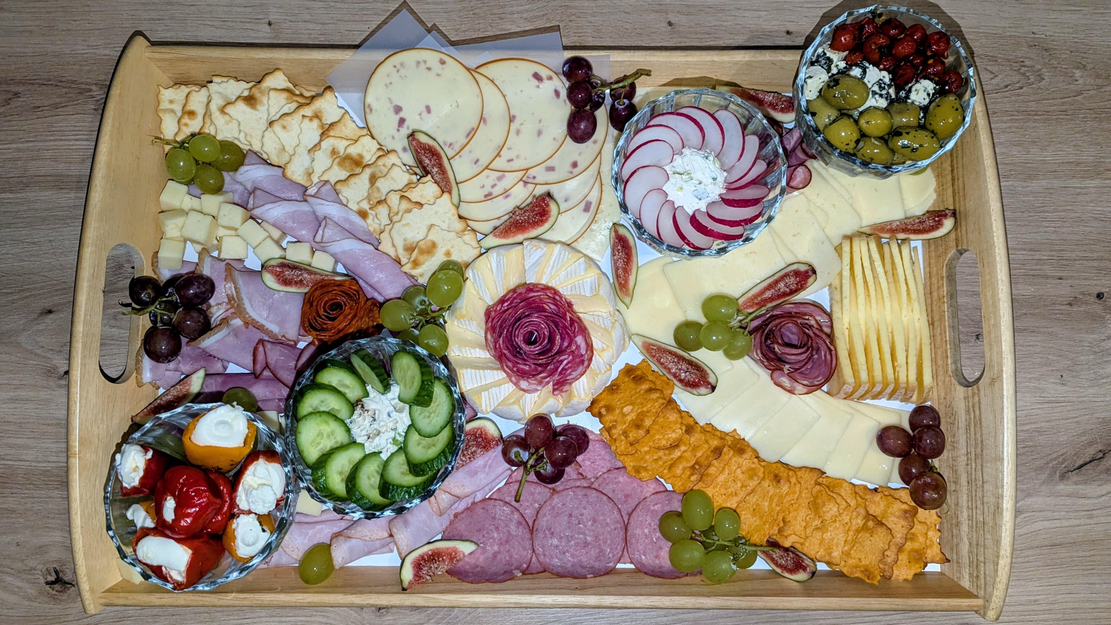 Her husband is cooking and preparing the drinks. I asked what I could bring and they told me a "cheese and sausage" plate. I used this as the opportunity to make my first charchuterie board as you guys show up in my feed now and then and I really love how they look.